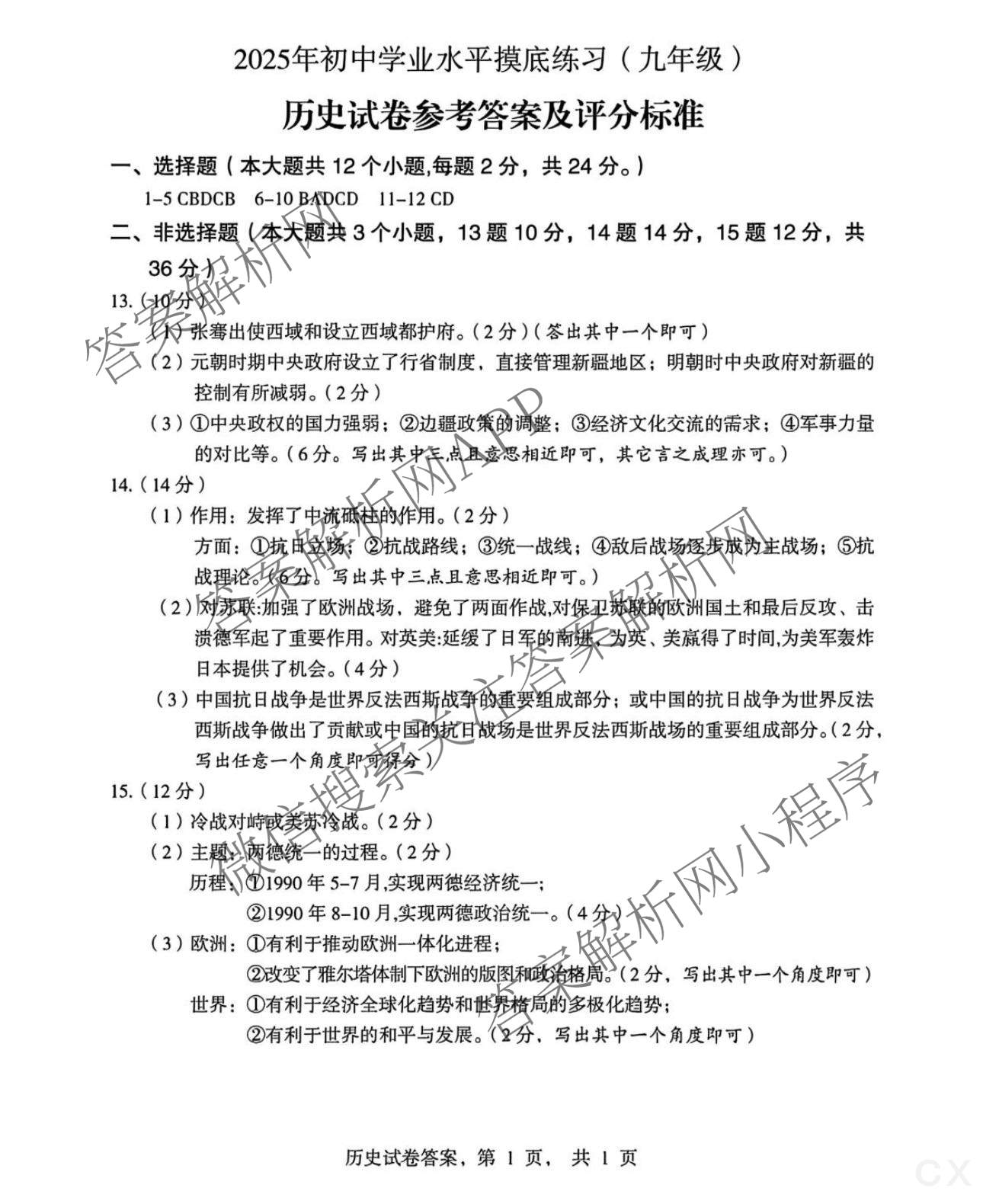 - 九年级河北省2025年初中学业水平摸底练习()历史答案