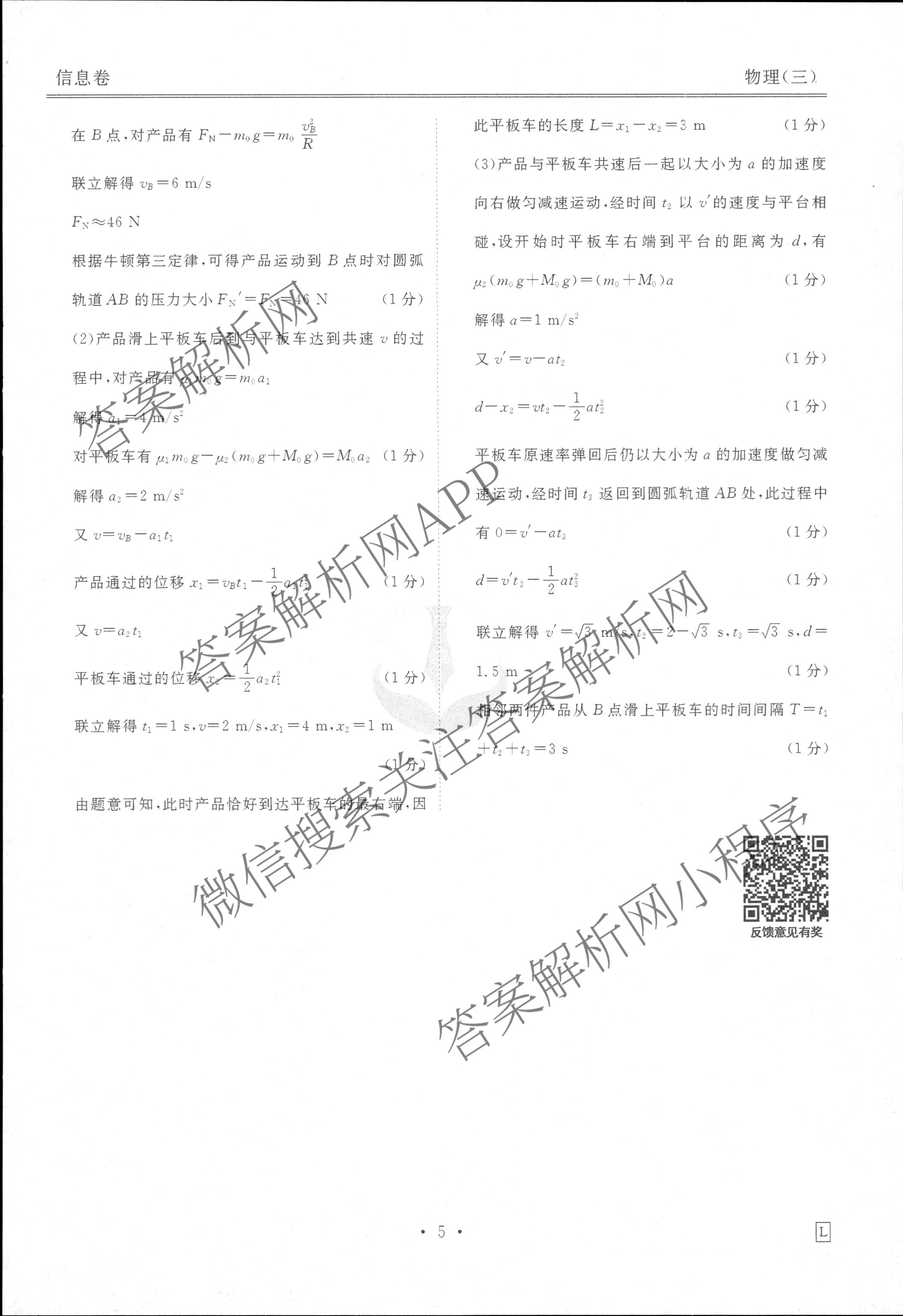 衡水金卷先享题·信息卷 2025年普通高中学业水平选择性考试模拟试题(三)3物理(L)答案,目前衡水金卷先享题答案网已经汇总了衡水金卷先享题·信息卷 2025年普通高中学业水平选择性考试模拟试题(三)3物理(L)答案的各科答案和试卷,获取更多衡水金卷先享题答案解析,请在关注本站。