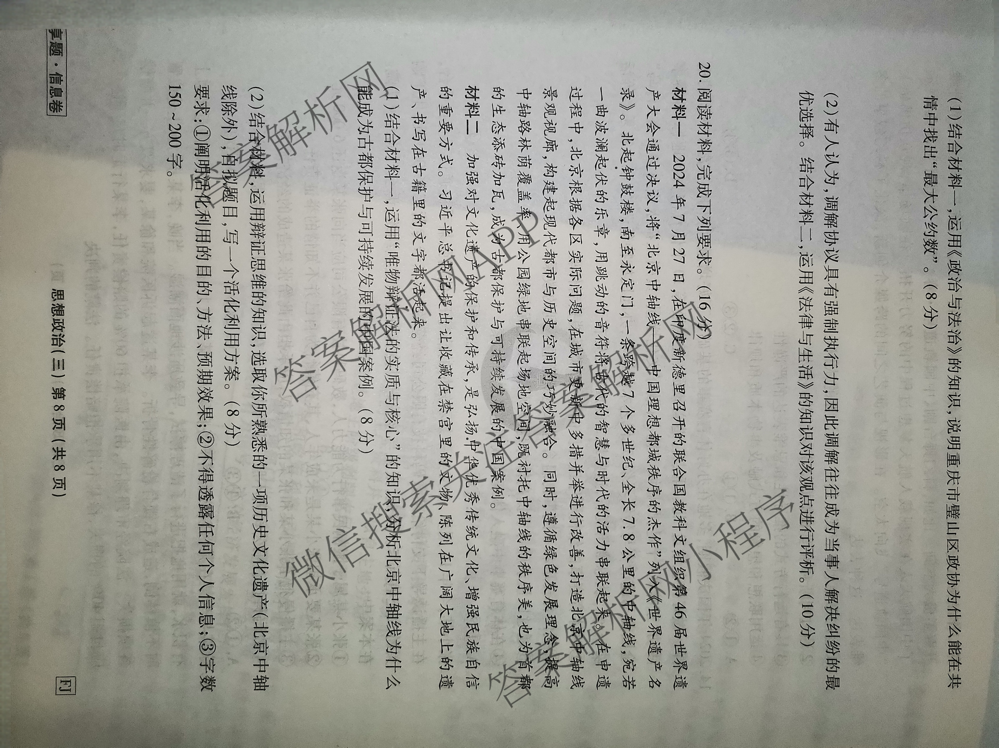 - [高三](衡水金卷先享题)信息卷 2025年普通高中学业水平选择性考试模拟试题(三)3政治(Q)试题