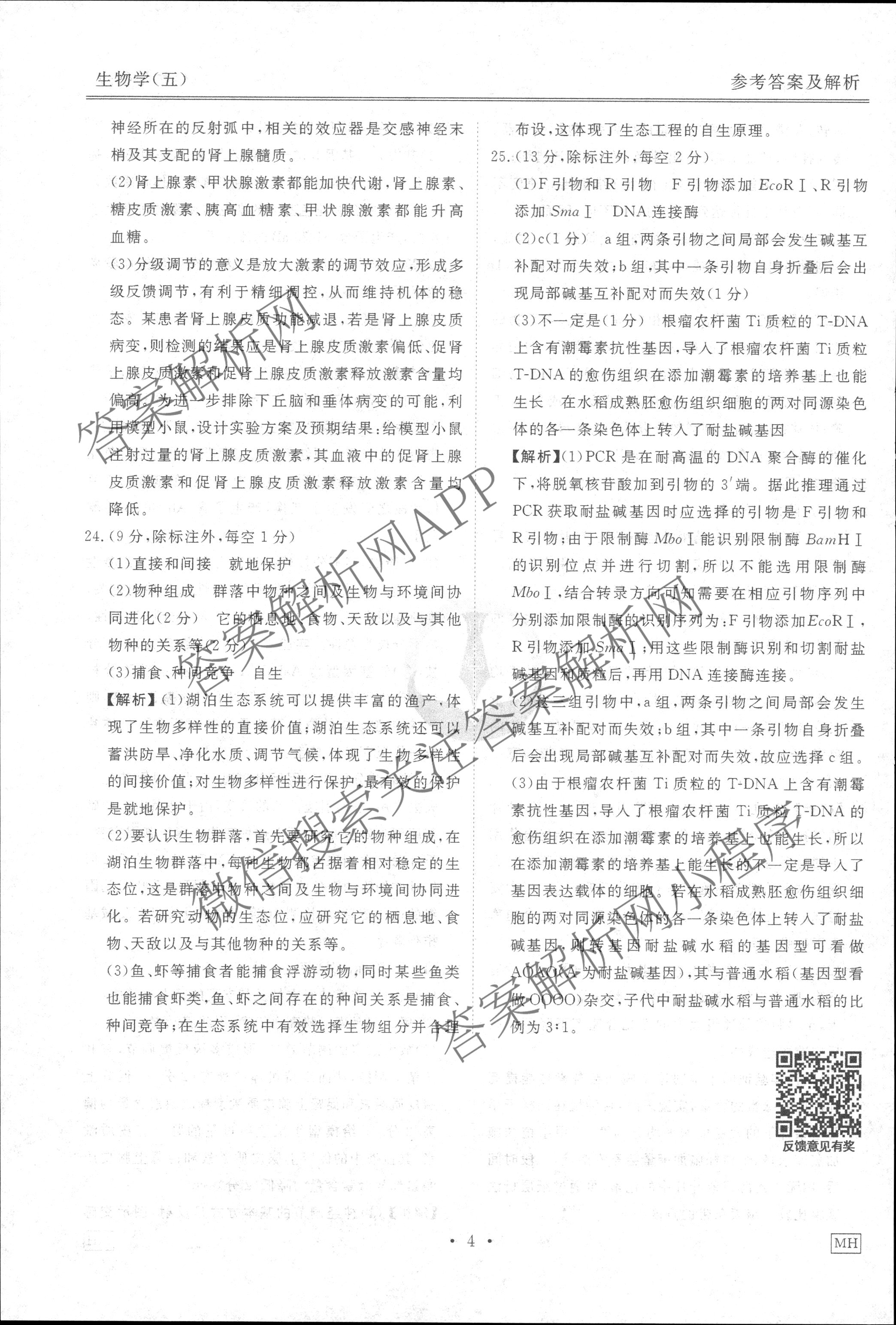 - [高三]衡水金卷先享题·信息卷 2025年普通高中学业水平选择性考试模拟试题(五)5生物(MH)答案