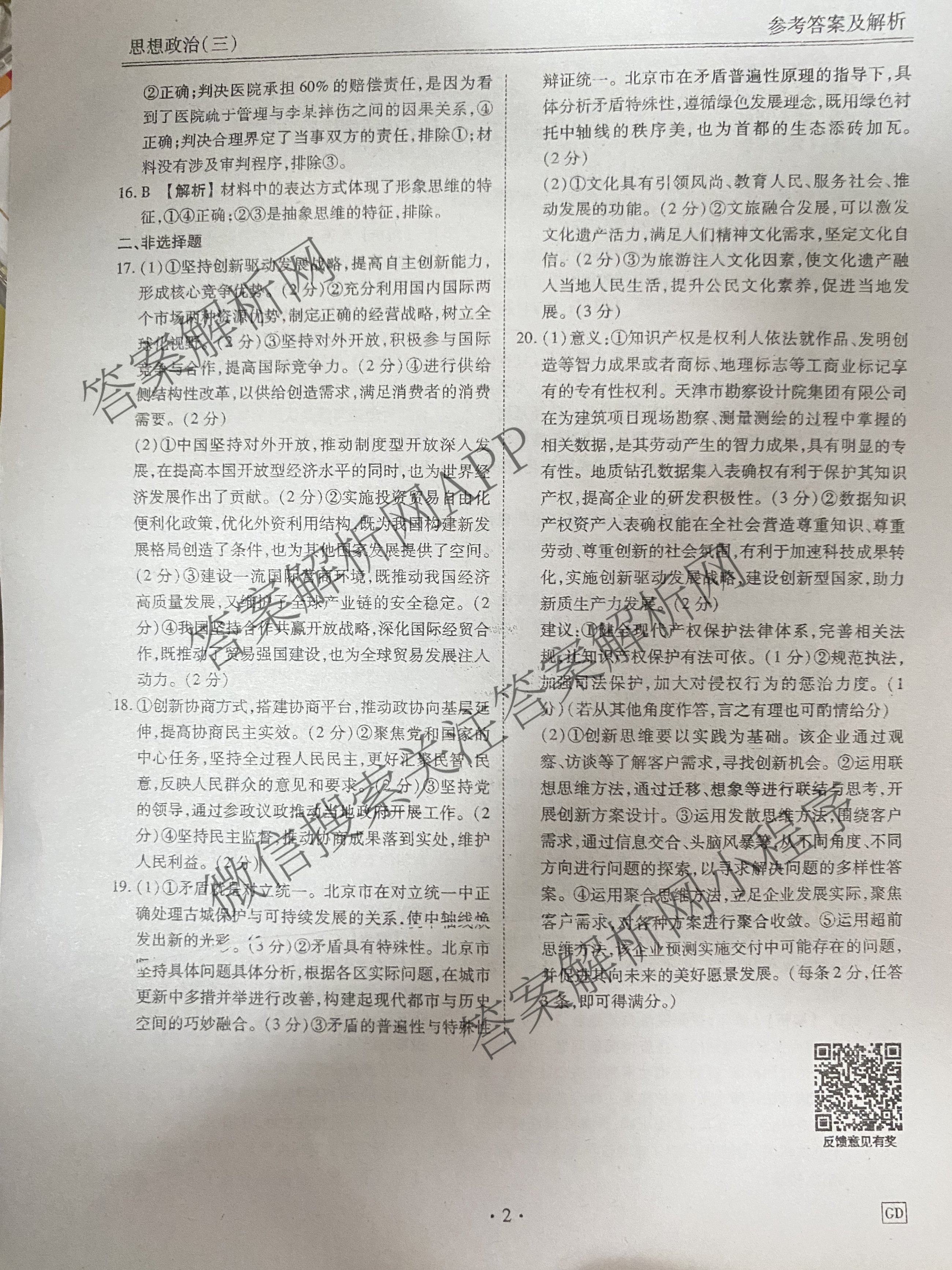 - [高三]衡水金卷先享题·信息卷 2025年普通高中学业水平选择性考试模拟试题(三)3政治(GX)答案