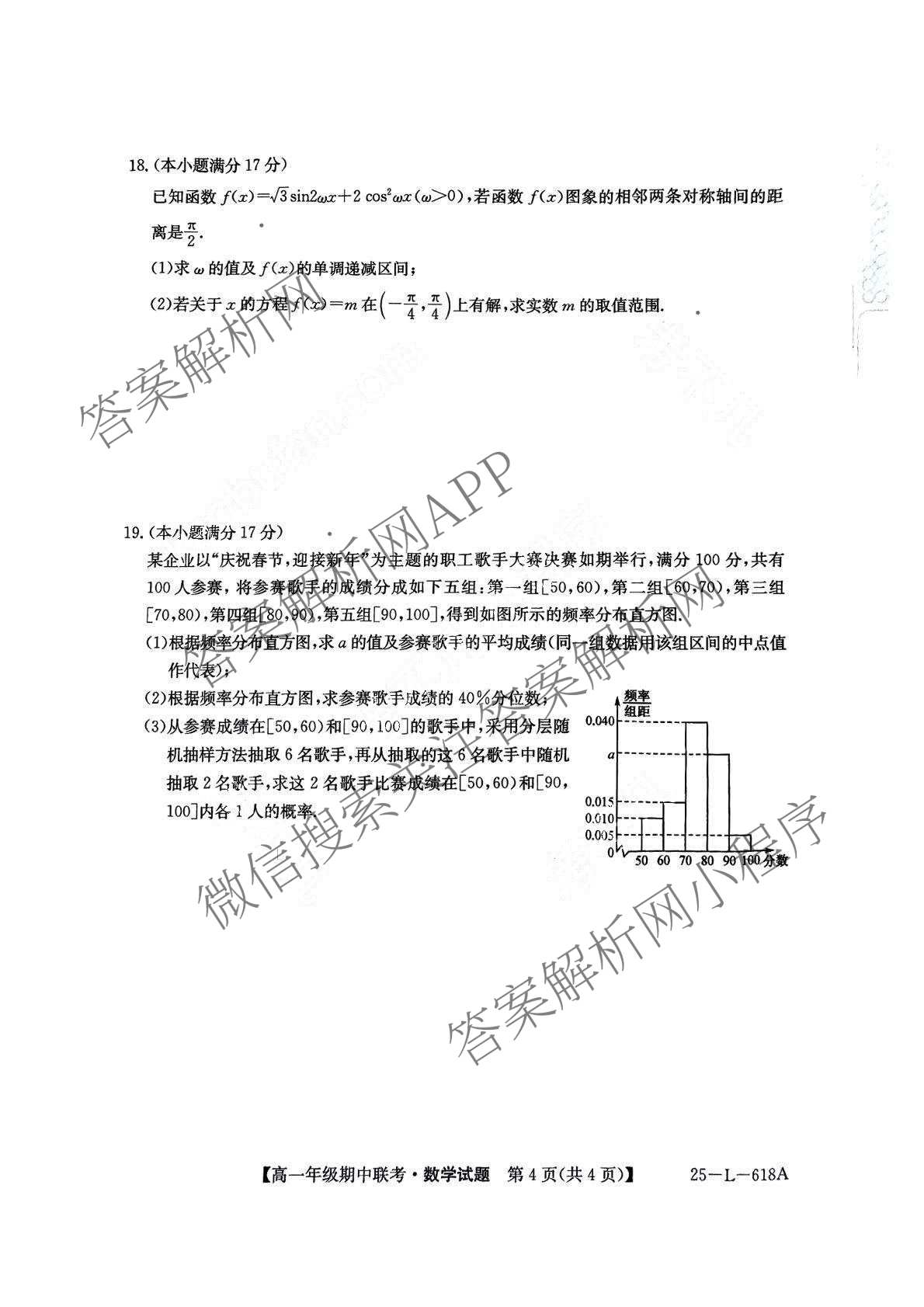 - 2024-2025高一安徽省学年度第二学期年级期中联考(25-L-618A)数学试题