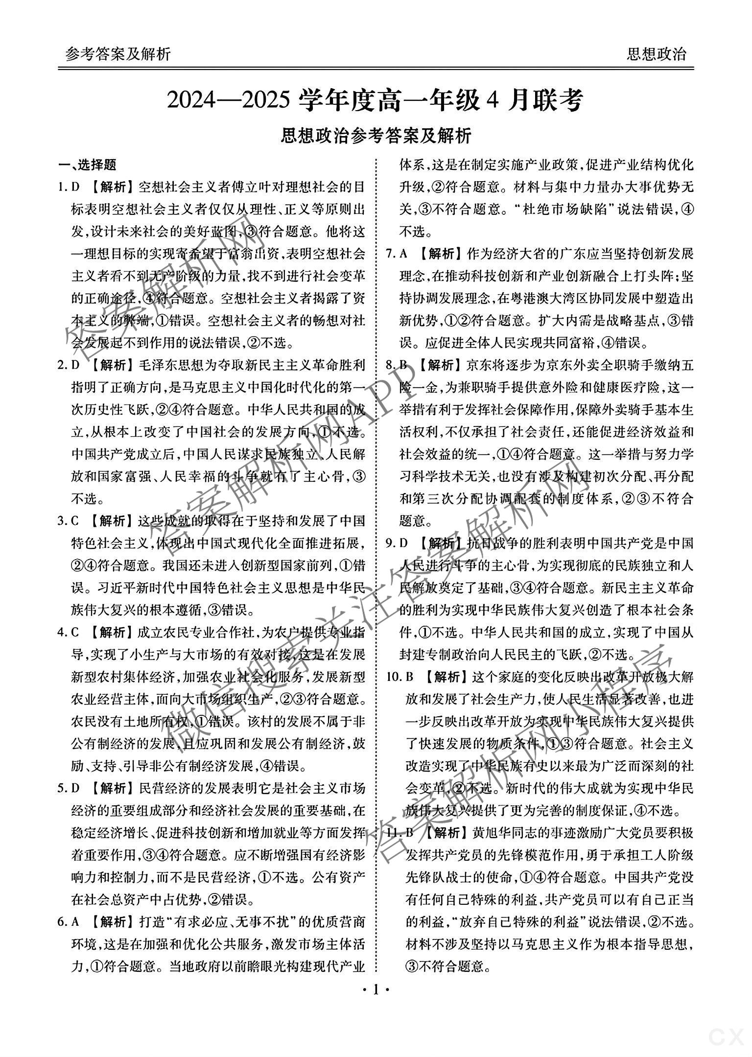 [高一]衡水大联考·2024~2025学年度年级4月联考政治答案