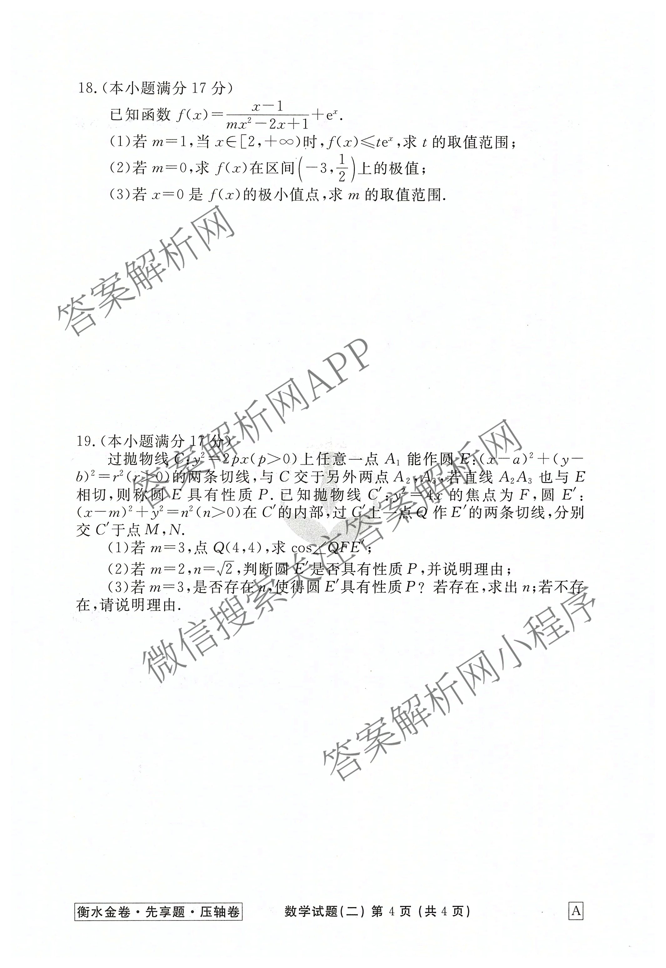 - [高三][衡水金卷先享题]·压轴卷 2025年普通高等学校招生全国统一考试模拟试题(二)2数学(A)试题