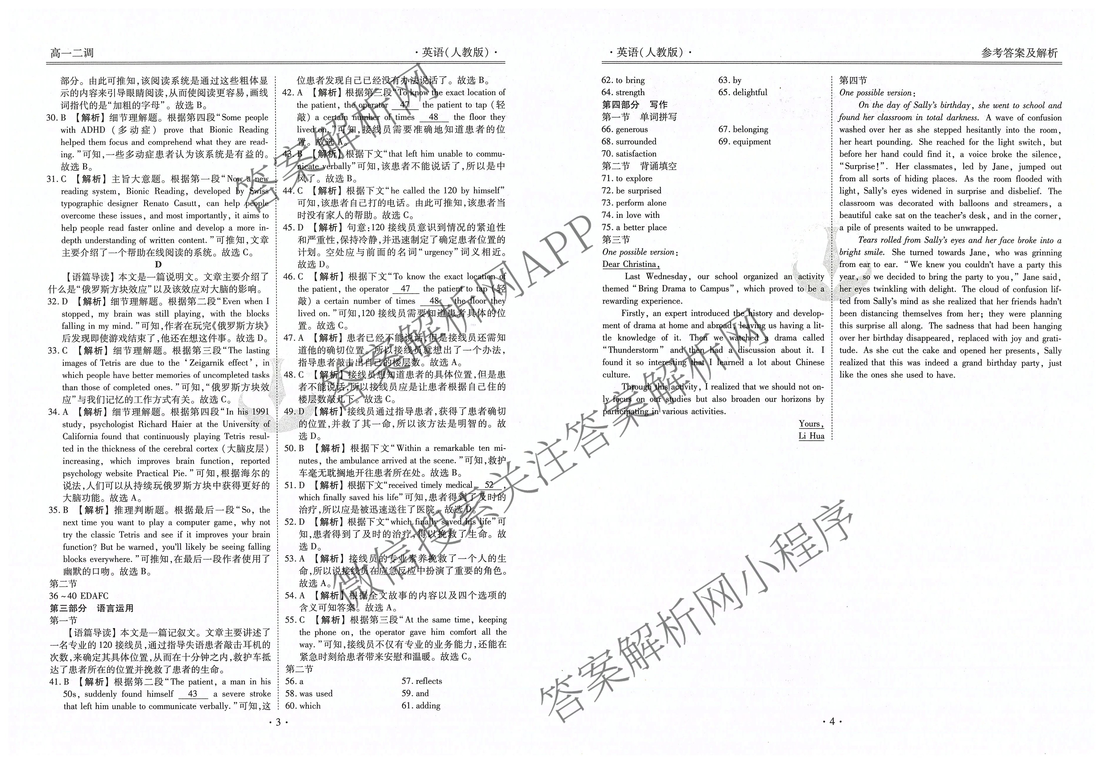 (衡水金卷先享题)月考卷2024~2025学年度下学期(高一)年级二调考试英语(人教版)答案