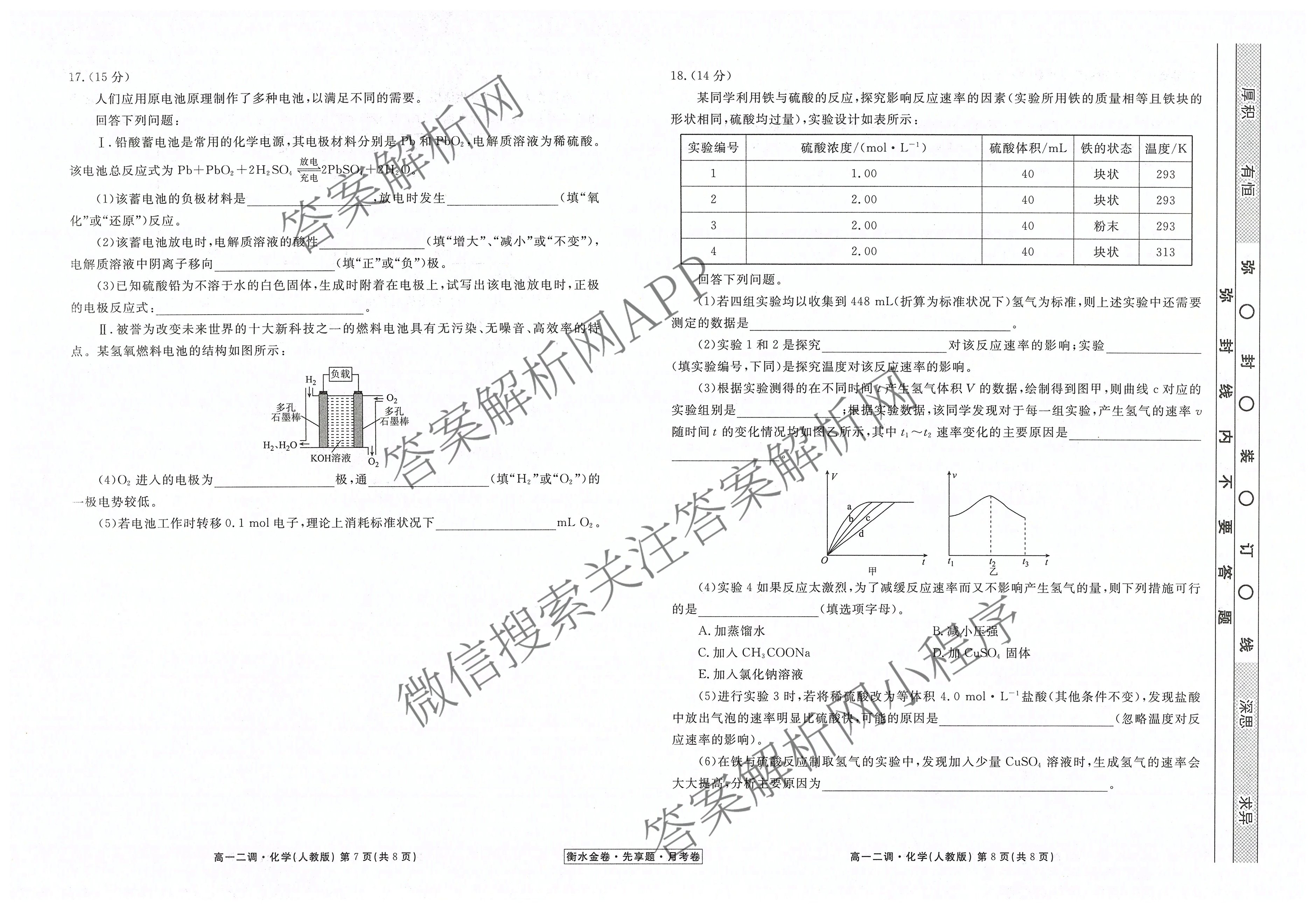 - 2024-2025(衡水金卷先享题)月考卷学年度下学期(高一)年级二调考试化学(人教版)答案
