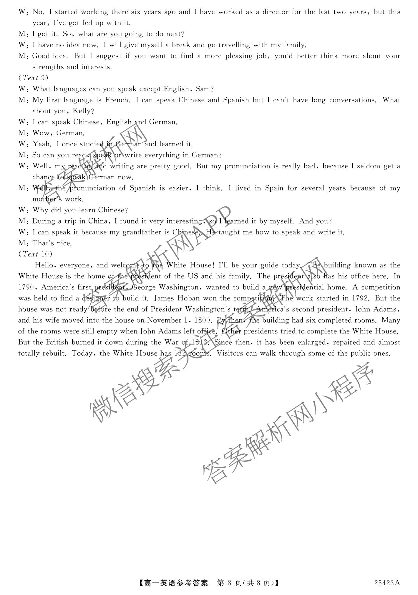 吉林省2024~2025学年度[高一]第二学期期中考试(25423A)英语答案