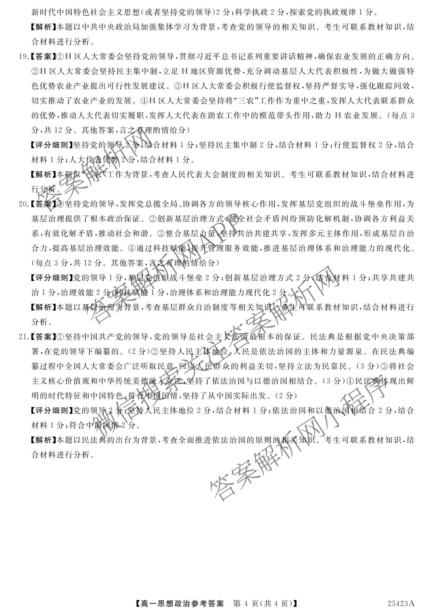 - 2024~2025高一吉林省学年度第二学期期中考试(25423A)政治答案