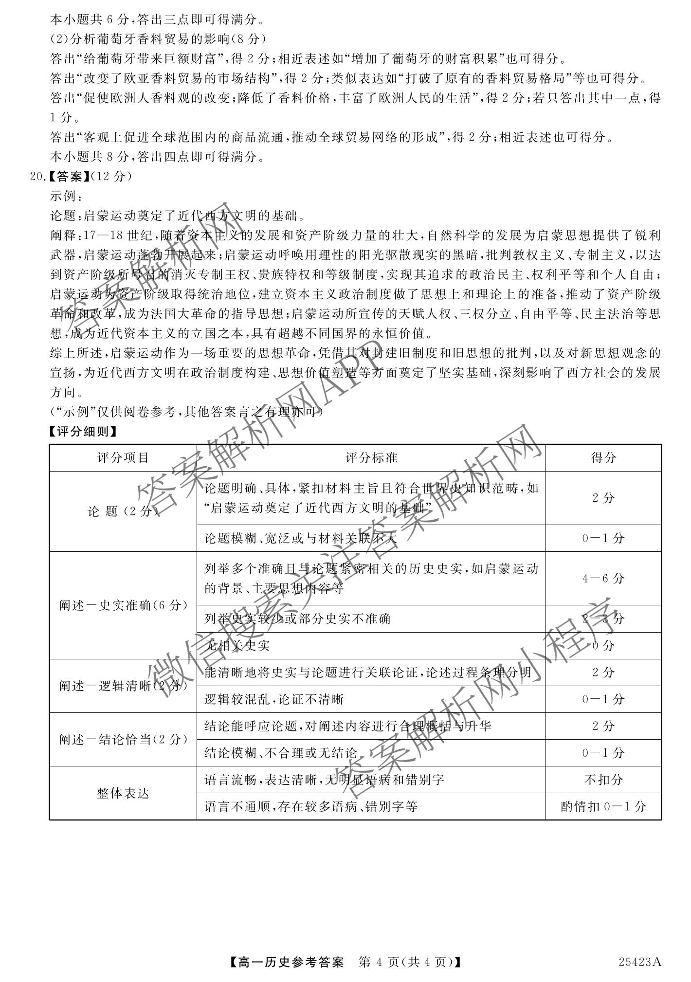 - 2024~2025[高一]吉林省学年度第二学期期中考试(25423A)历史答案