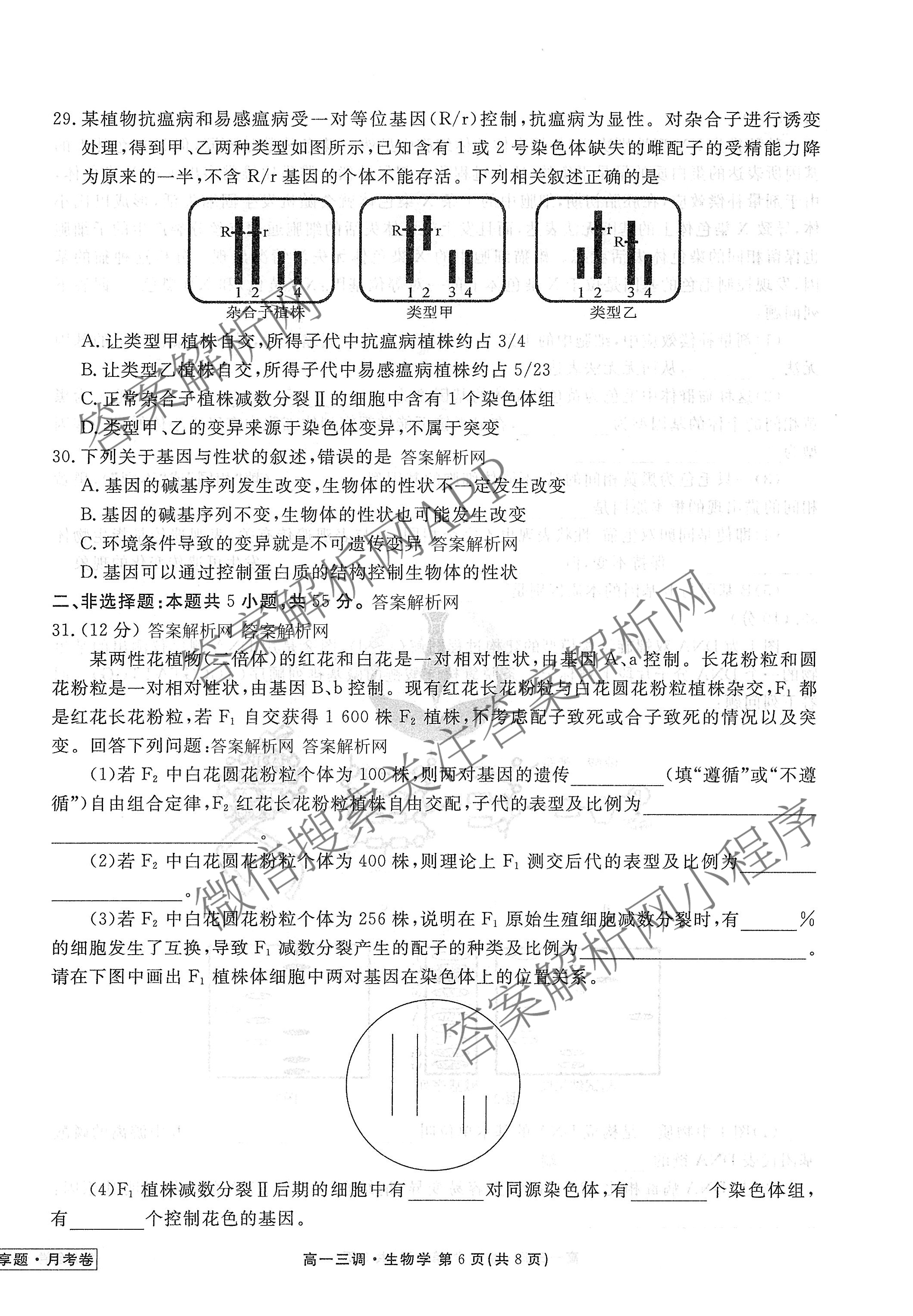 衡水金卷先享题·月考卷·2024-2025学年度下学期高一年级三调考试生物试题,目前衡水金卷先享题答案网已经汇总了衡水金卷先享题·月考卷·2024-2025学年度下学期高一年级三调考试生物试题的各科答案和试卷,获取更多衡水金卷先享题答案解析,请在关注本站。
