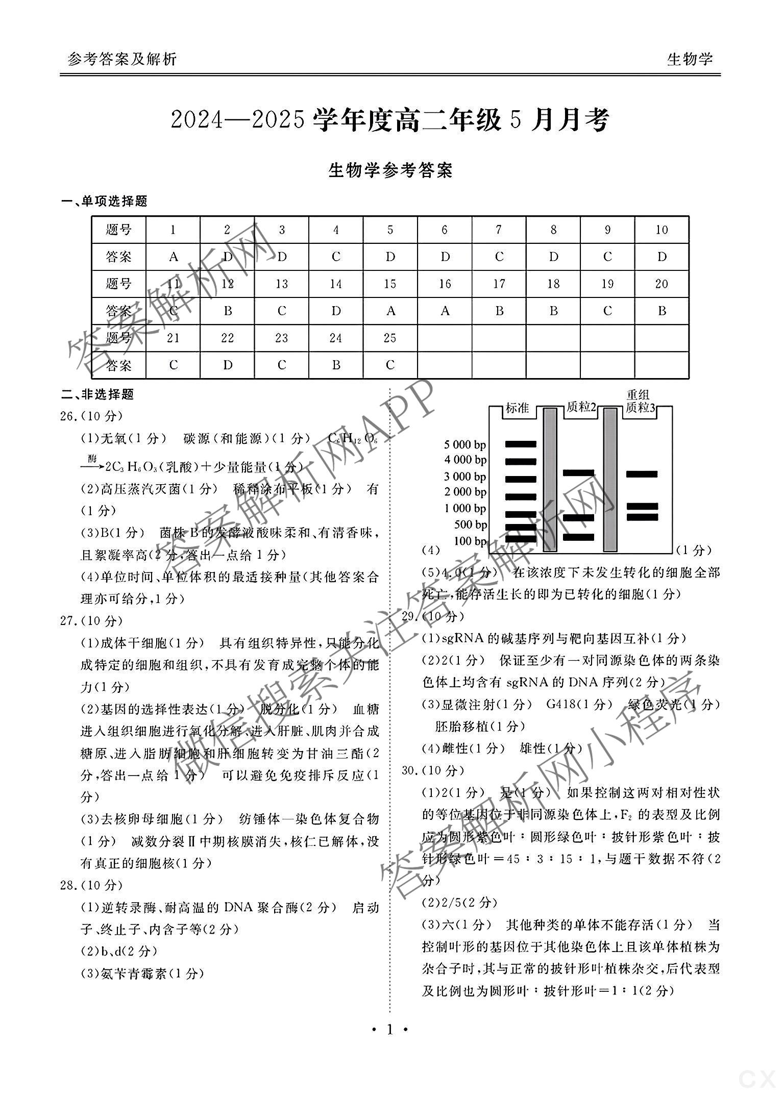 衡水大联考2024-2025学年度高二年级5月月考生物答案,目前衡水金卷先享题答案网已经汇总了衡水大联考2024-2025学年度高二年级5月月考生物答案的各科答案和试卷,获取更多衡水金卷先享题答案解析,请在关注本站。