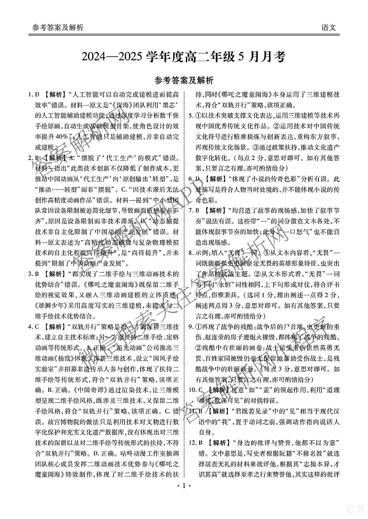 (高二)衡水大联考2024-2025学年度年级5月月考语文答案
