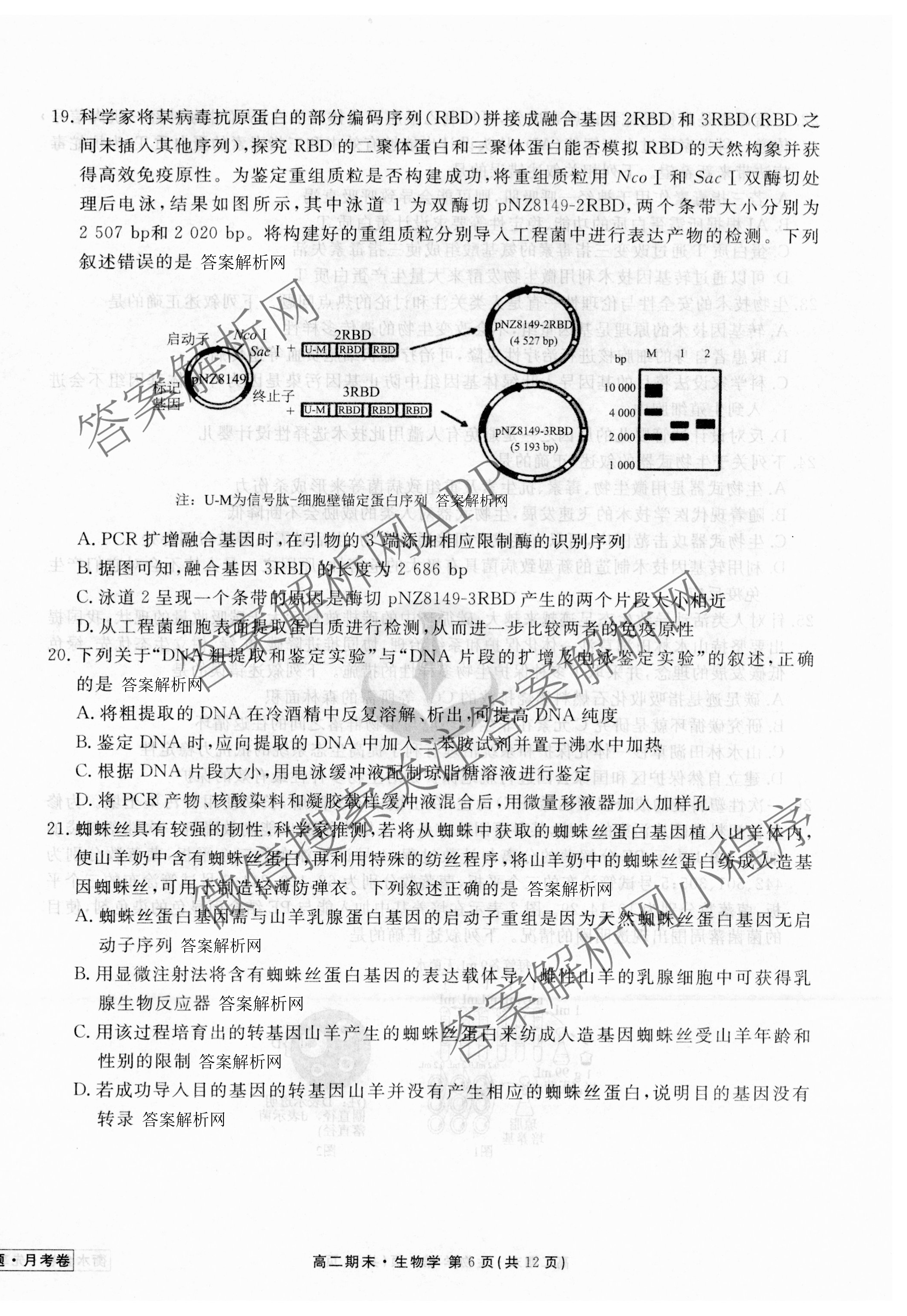 衡水金卷先享题·月考卷 2024-2025学年度下学期高二年级期末考试生物试题,目前衡水金卷先享题答案网已经汇总了衡水金卷先享题·月考卷 2024-2025学年度下学期高二年级期末考试生物试题的各科答案和试卷,获取更多衡水金卷先享题答案解析,请在关注本站。