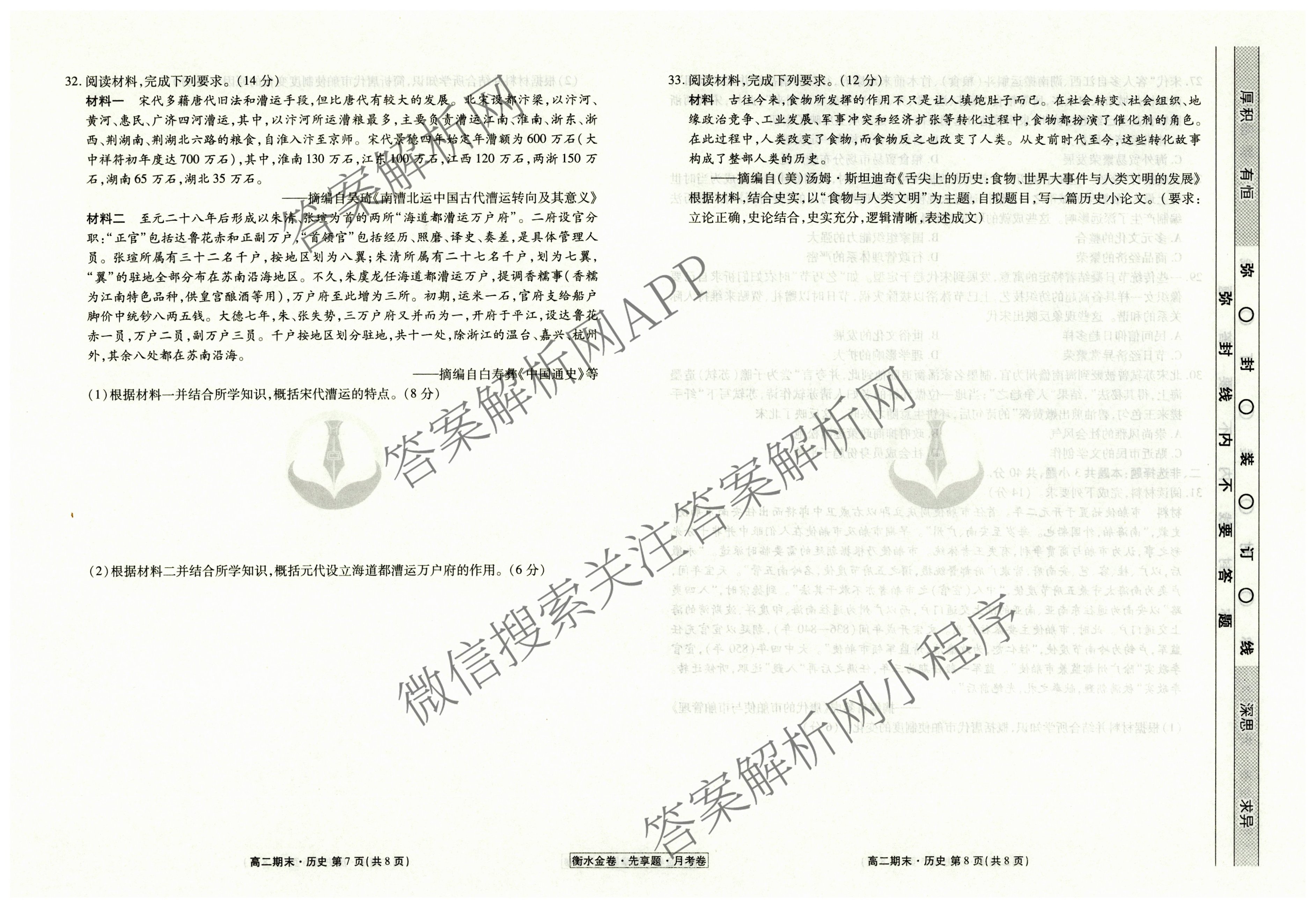 衡水金卷先享题·月考卷 2024-2025学年度下学期高二年级期末考试历史试题,目前衡水金卷先享题答案网已经汇总了衡水金卷先享题·月考卷 2024-2025学年度下学期高二年级期末考试历史试题的各科答案和试卷,获取更多衡水金卷先享题答案解析,请在关注本站。