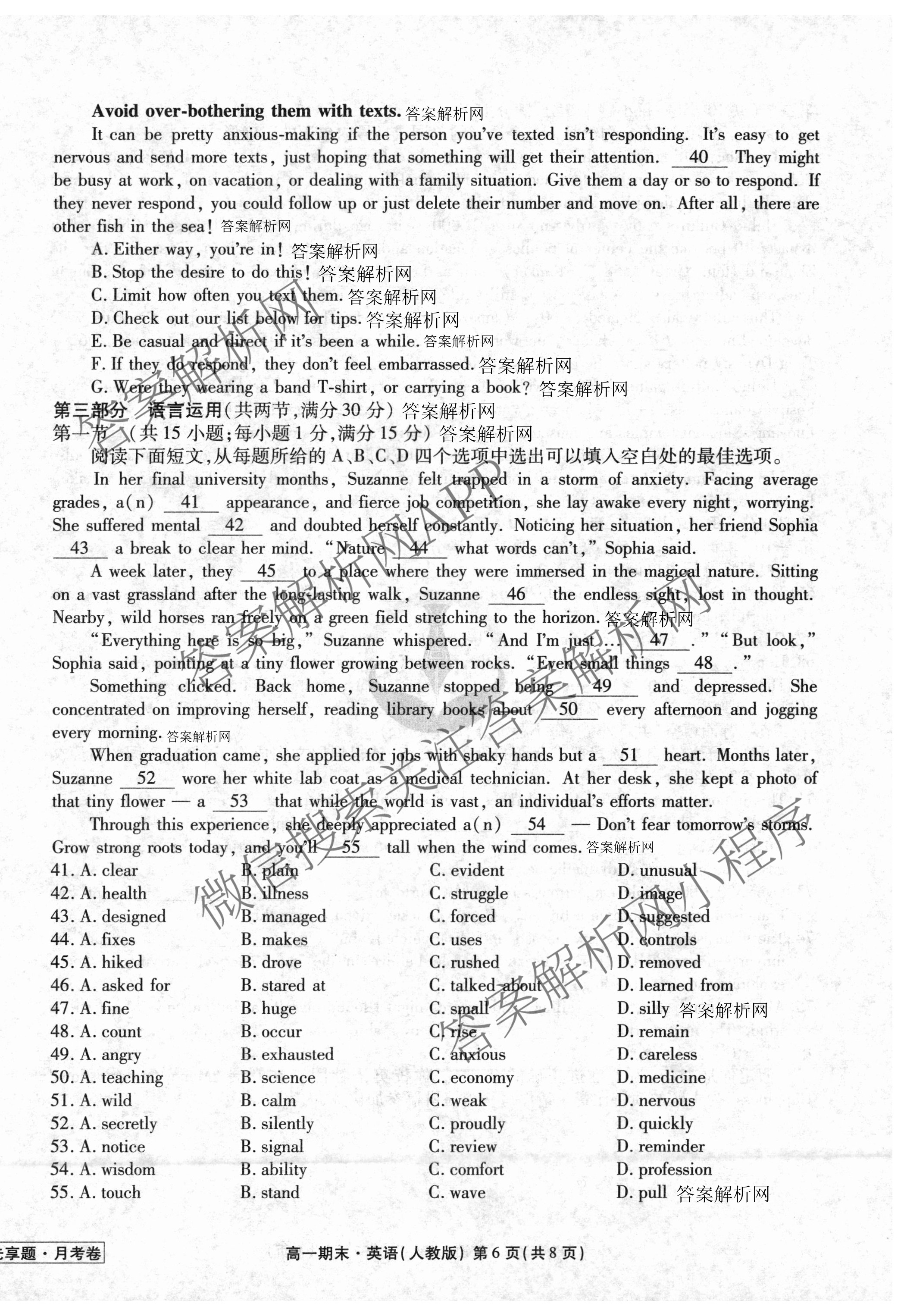 衡水金卷先享题·月考卷2024-2025学年度下学期高一年级期末考试英语(人教版)试题,目前衡水金卷先享题答案网已经汇总了衡水金卷先享题·月考卷2024-2025学年度下学期高一年级期末考试英语(人教版)试题的各科答案和试卷,获取更多衡水金卷先享题答案解析,请在关注本站。