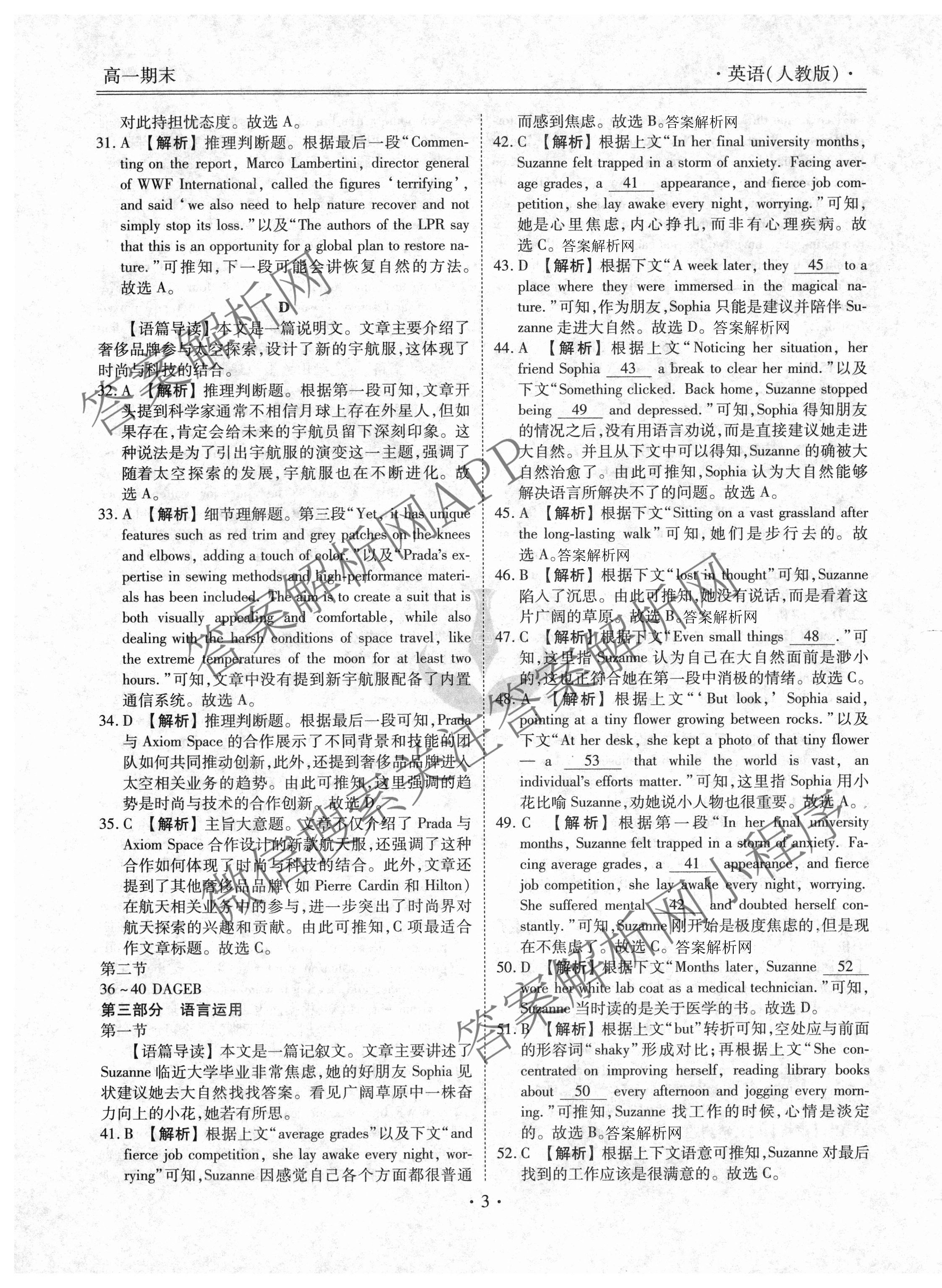 - 2024~2025(衡水金卷先享题)月考卷学年度下学期(高一)年级期末考试英语(人教版)答案