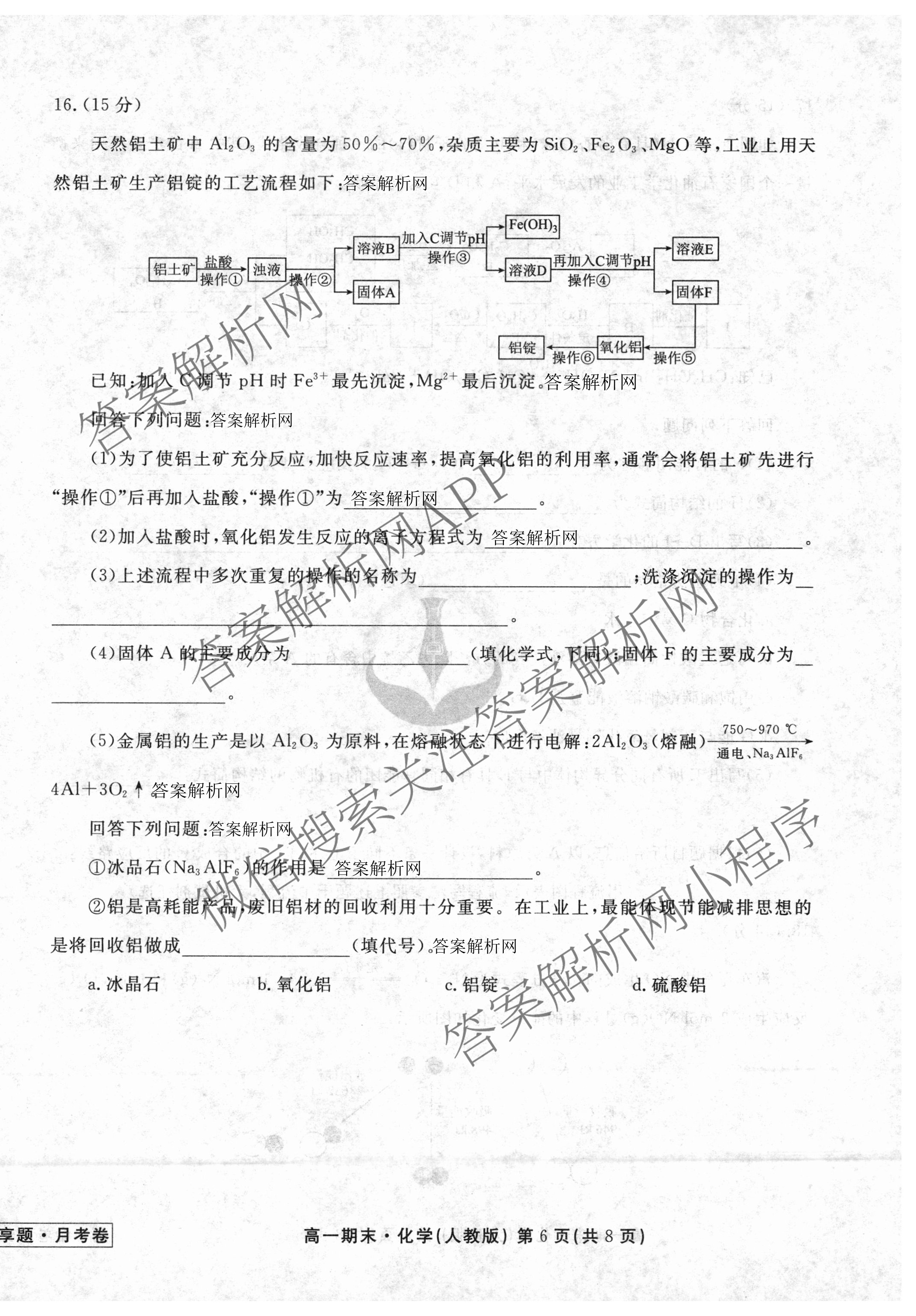 衡水金卷先享题·月考卷2024-2025学年度下学期高一年级期末考试化学(人教版)试题,目前衡水金卷先享题答案网已经汇总了衡水金卷先享题·月考卷2024-2025学年度下学期高一年级期末考试化学(人教版)试题的各科答案和试卷,获取更多衡水金卷先享题答案解析,请在关注本站。