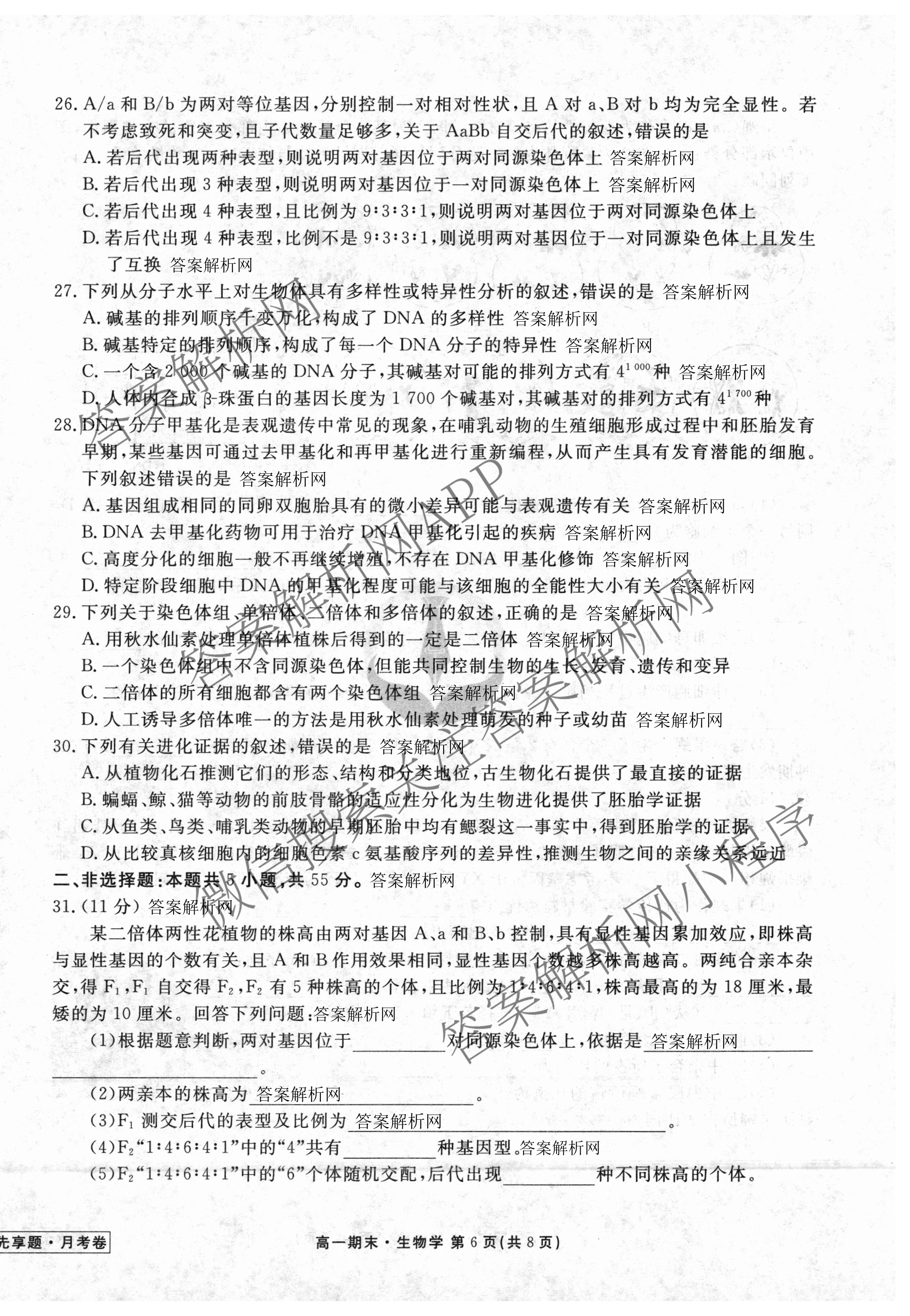 衡水金卷先享题·月考卷2024-2025学年度下学期高一年级期末考试生物试题,目前衡水金卷先享题答案网已经汇总了衡水金卷先享题·月考卷2024-2025学年度下学期高一年级期末考试生物试题的各科答案和试卷,获取更多衡水金卷先享题答案解析,请在关注本站。