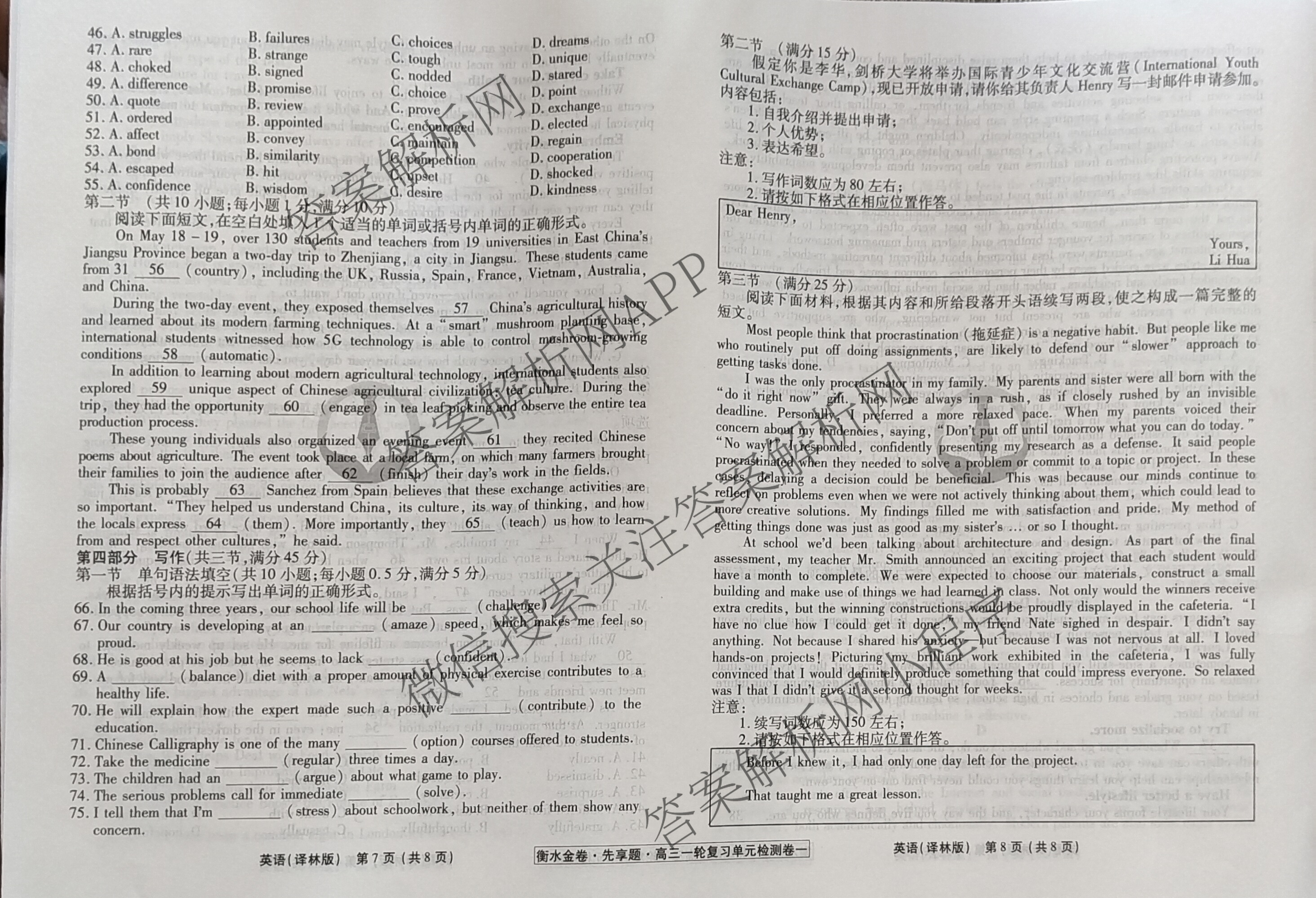 2025-2026衡水金卷先享题·高三一轮复习单元检测卷(译林版)英语(一)1试题,目前衡水金卷先享题答案网已经汇总了2025-2026衡水金卷先享题·高三一轮复习单元检测卷(译林版)英语(一)1试题的各科答案和试卷,获取更多衡水金卷先享题答案解析,请在关注本站。