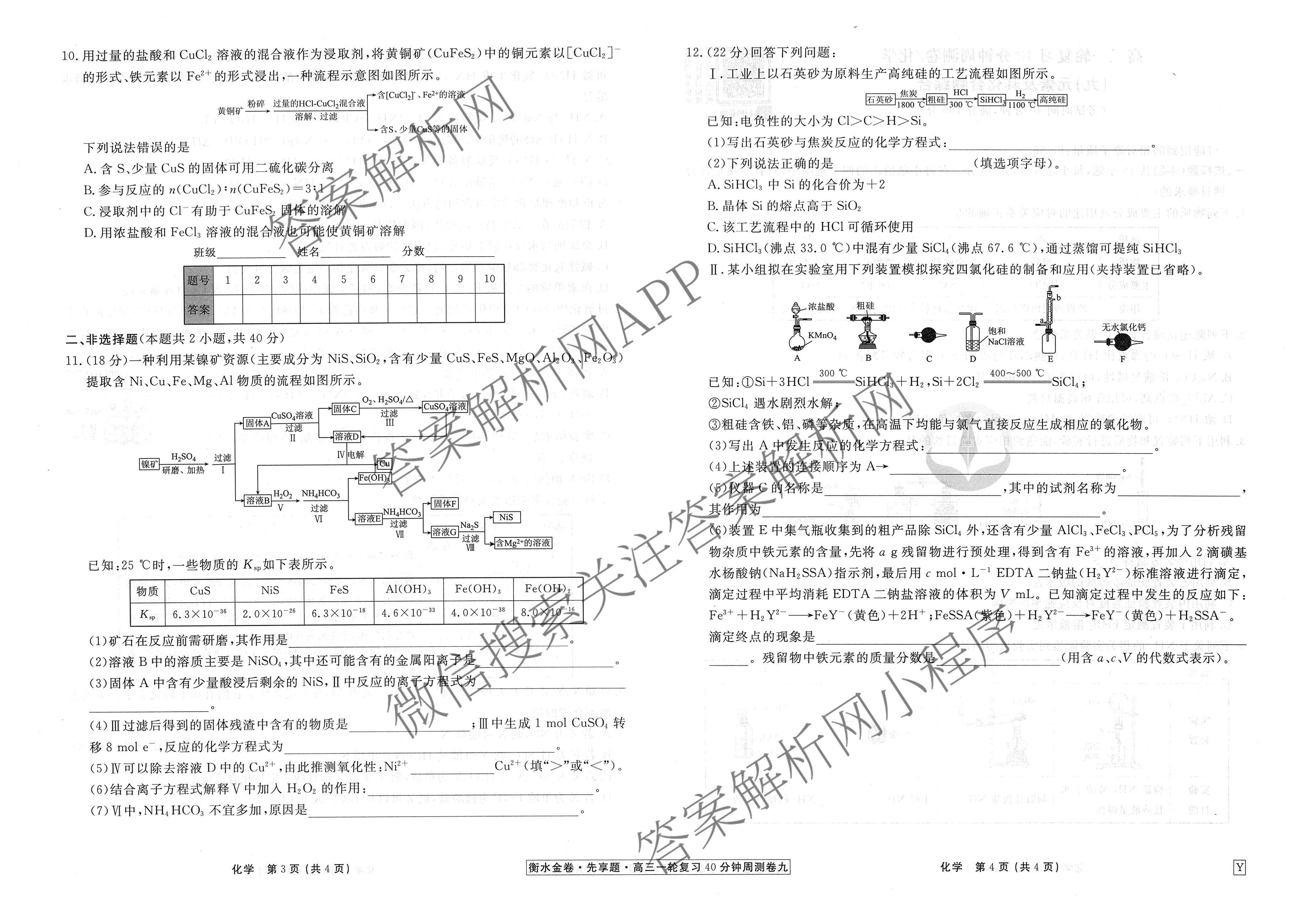 2025-2026衡水金卷先享题·高三一轮复习40分钟周测卷(九)9化学(Y)试题,目前衡水金卷先享题答案网已经汇总了2025-2026衡水金卷先享题·高三一轮复习40分钟周测卷(九)9化学(Y)试题的各科答案和试卷,获取更多衡水金卷先享题答案解析,请在关注本站。