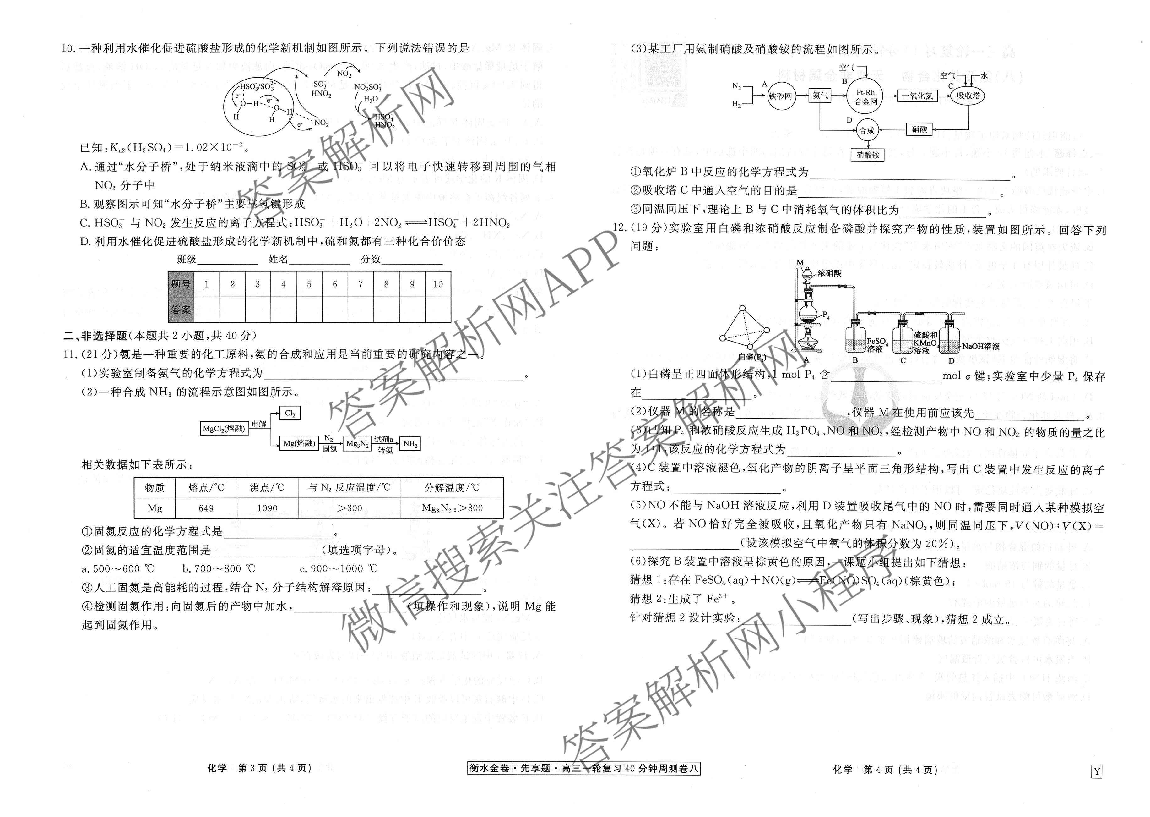 2025-2026衡水金卷先享题·高三一轮复习40分钟周测卷(八)8化学(Y)试题,目前衡水金卷先享题答案网已经汇总了2025-2026衡水金卷先享题·高三一轮复习40分钟周测卷(八)8化学(Y)试题的各科答案和试卷,获取更多衡水金卷先享题答案解析,请在关注本站。