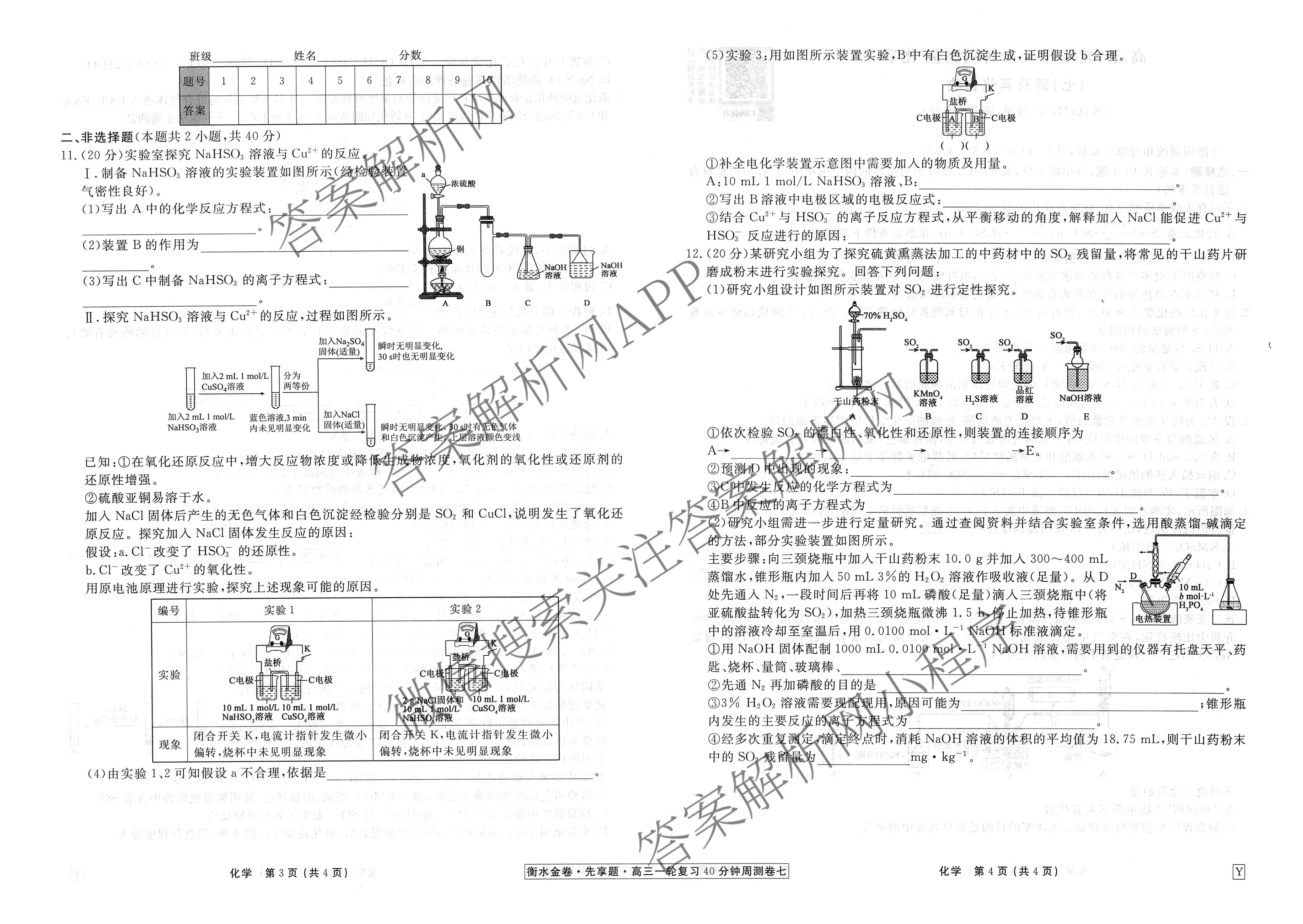 2025-2026衡水金卷先享题·高三一轮复习40分钟周测卷(七)7化学(Y)试题,目前衡水金卷先享题答案网已经汇总了2025-2026衡水金卷先享题·高三一轮复习40分钟周测卷(七)7化学(Y)试题的各科答案和试卷,获取更多衡水金卷先享题答案解析,请在关注本站。