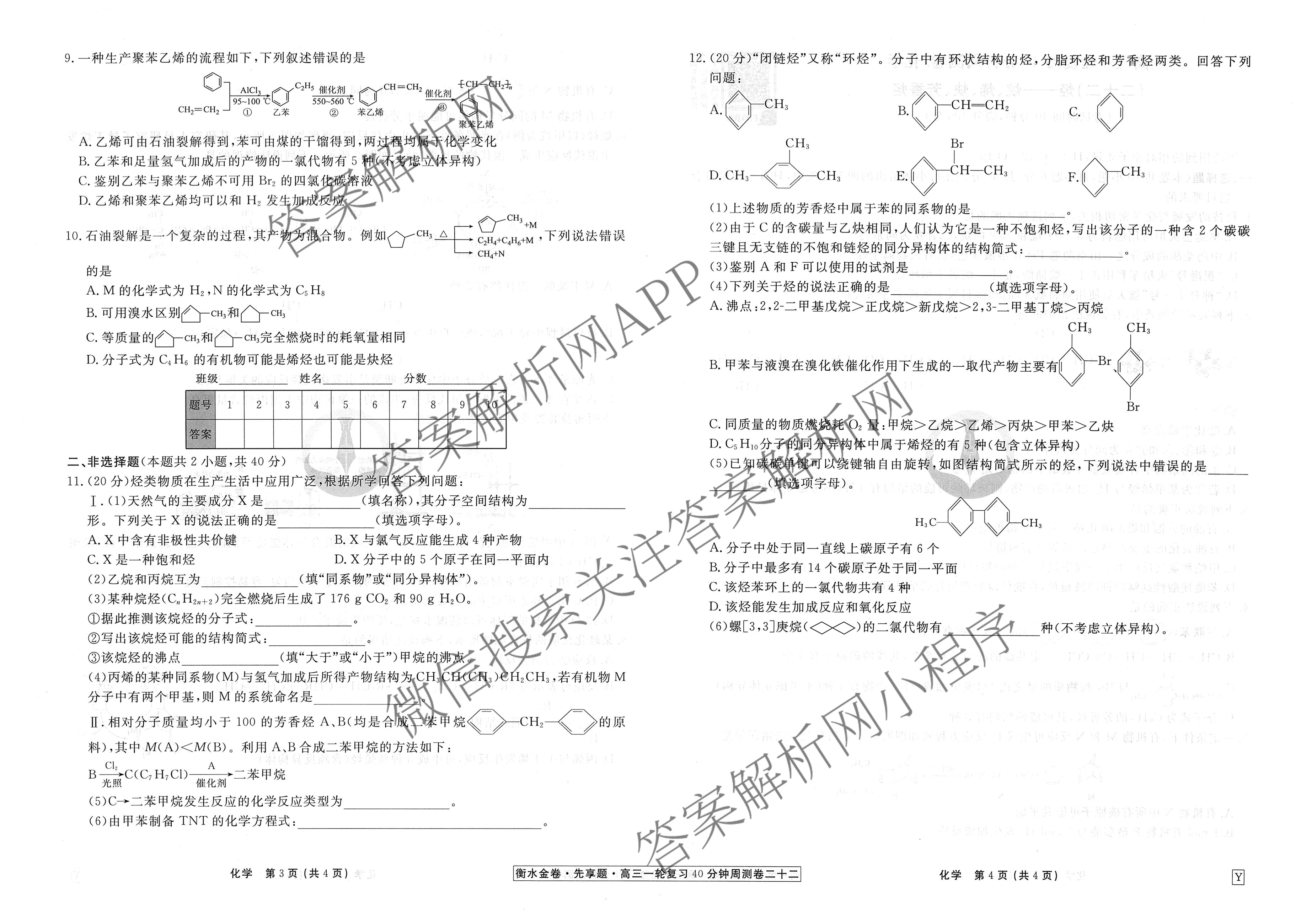 2025-2026衡水金卷先享题·高三一轮复习40分钟周测卷(二十二)22化学(Y)试题,目前衡水金卷先享题答案网已经汇总了2025-2026衡水金卷先享题·高三一轮复习40分钟周测卷(二十二)22化学(Y)试题的各科答案和试卷,获取更多衡水金卷先享题答案解析,请在关注本站。
