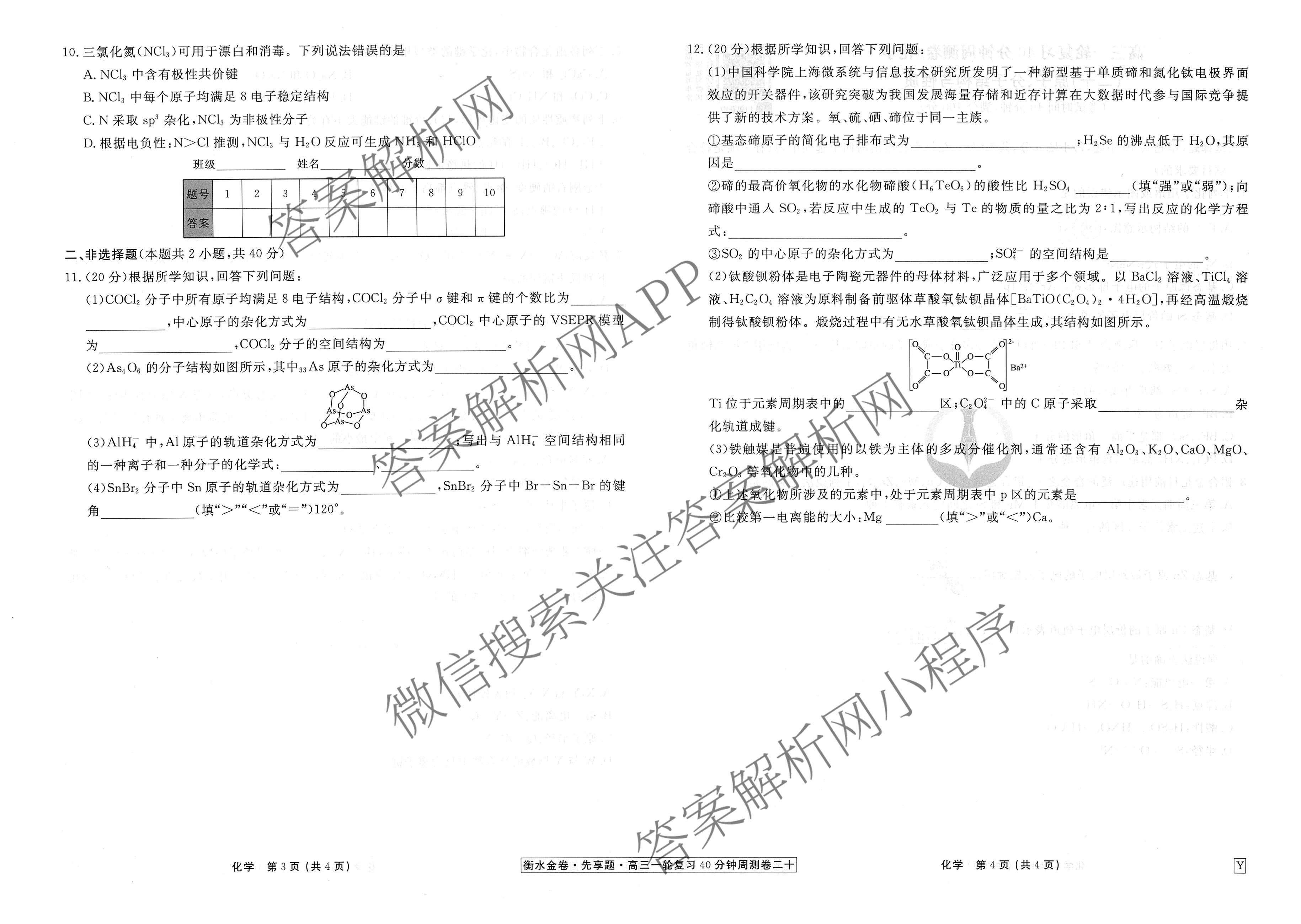 2025-2026衡水金卷先享题·高三一轮复习40分钟周测卷(二十)20化学(Y)试题,目前衡水金卷先享题答案网已经汇总了2025-2026衡水金卷先享题·高三一轮复习40分钟周测卷(二十)20化学(Y)试题的各科答案和试卷,获取更多衡水金卷先享题答案解析,请在关注本站。