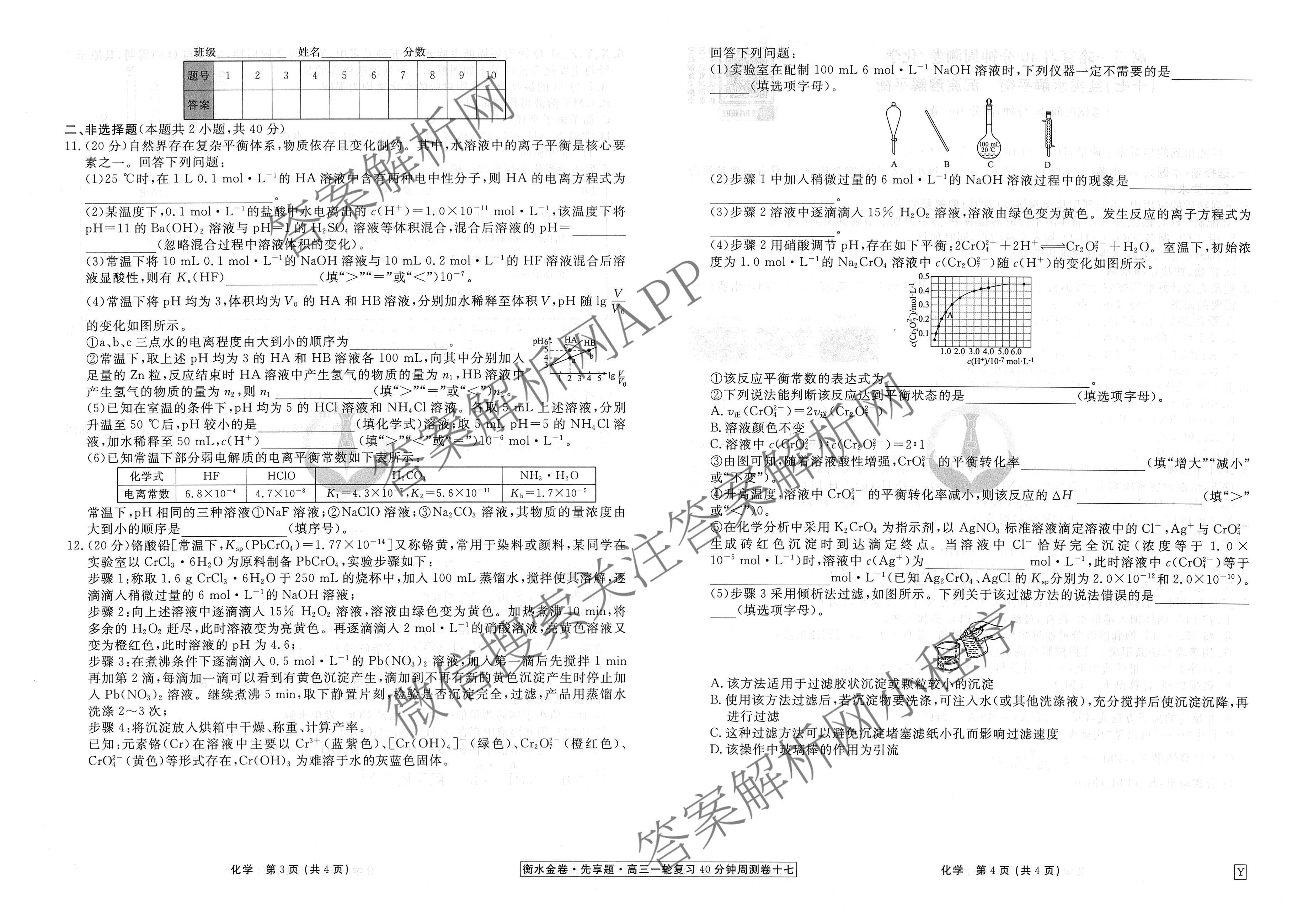 2025-2026衡水金卷先享题·高三一轮复习40分钟周测卷(十七)17化学(Y)试题,目前衡水金卷先享题答案网已经汇总了2025-2026衡水金卷先享题·高三一轮复习40分钟周测卷(十七)17化学(Y)试题的各科答案和试卷,获取更多衡水金卷先享题答案解析,请在关注本站。