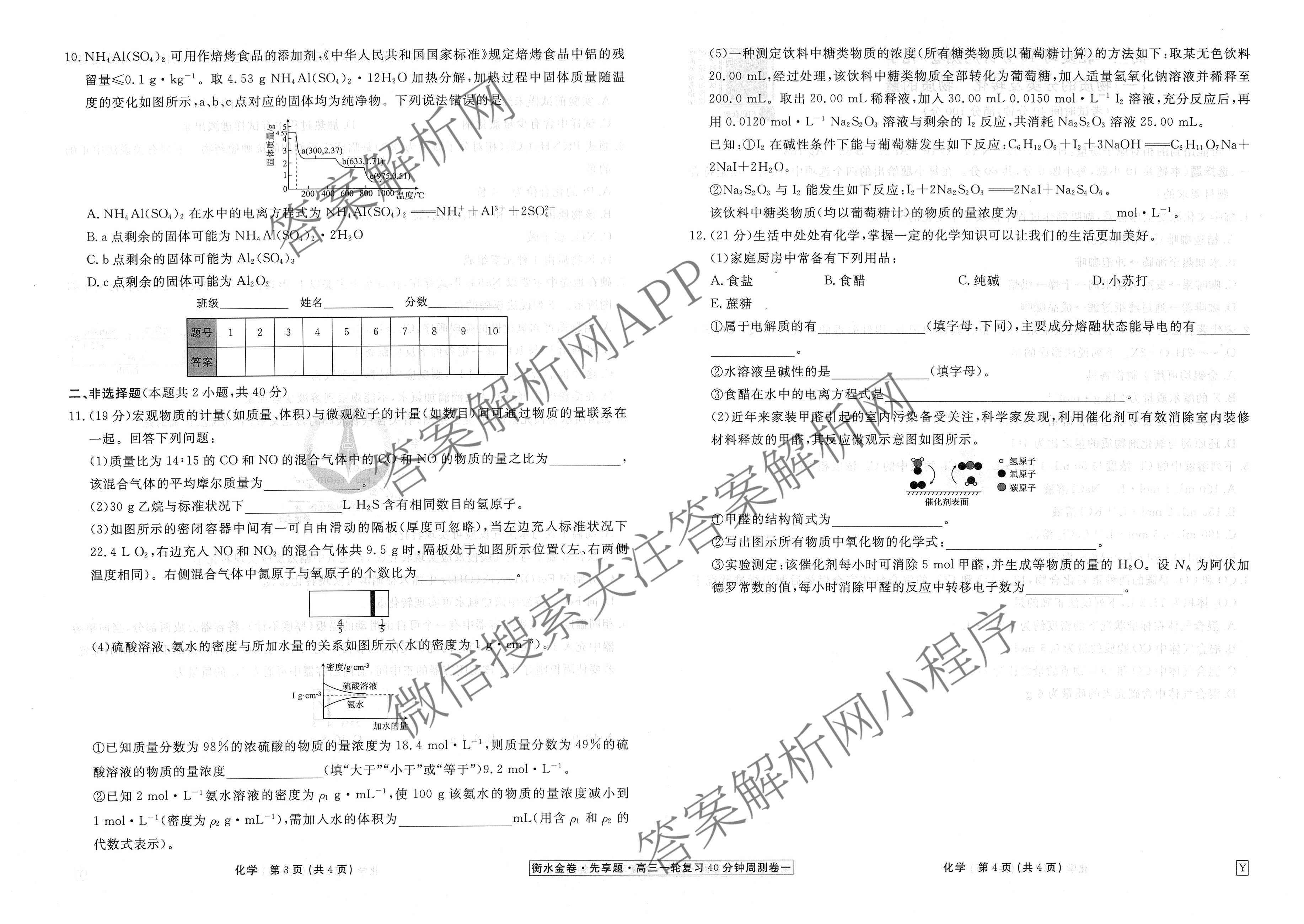 2025-2026衡水金卷先享题·高三一轮复习40分钟周测卷(一)1化学(Y)试题,目前衡水金卷先享题答案网已经汇总了2025-2026衡水金卷先享题·高三一轮复习40分钟周测卷(一)1化学(Y)试题的各科答案和试卷,获取更多衡水金卷先享题答案解析,请在关注本站。