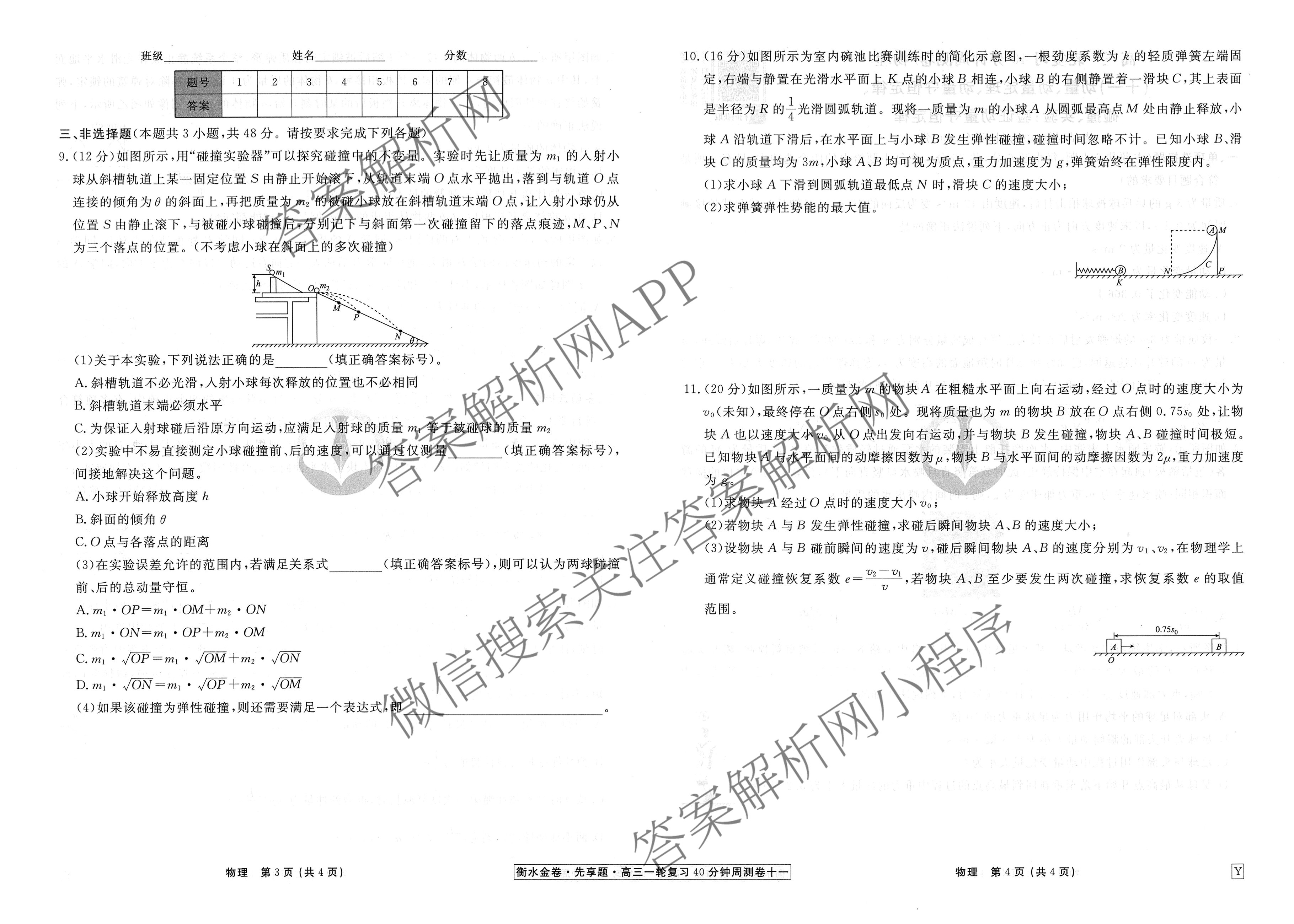 2025-2026衡水金卷先享题·高三一轮复习40分钟周测卷(十一)11物理(Y)试题,目前衡水金卷先享题答案网已经汇总了2025-2026衡水金卷先享题·高三一轮复习40分钟周测卷(十一)11物理(Y)试题的各科答案和试卷,获取更多衡水金卷先享题答案解析,请在关注本站。