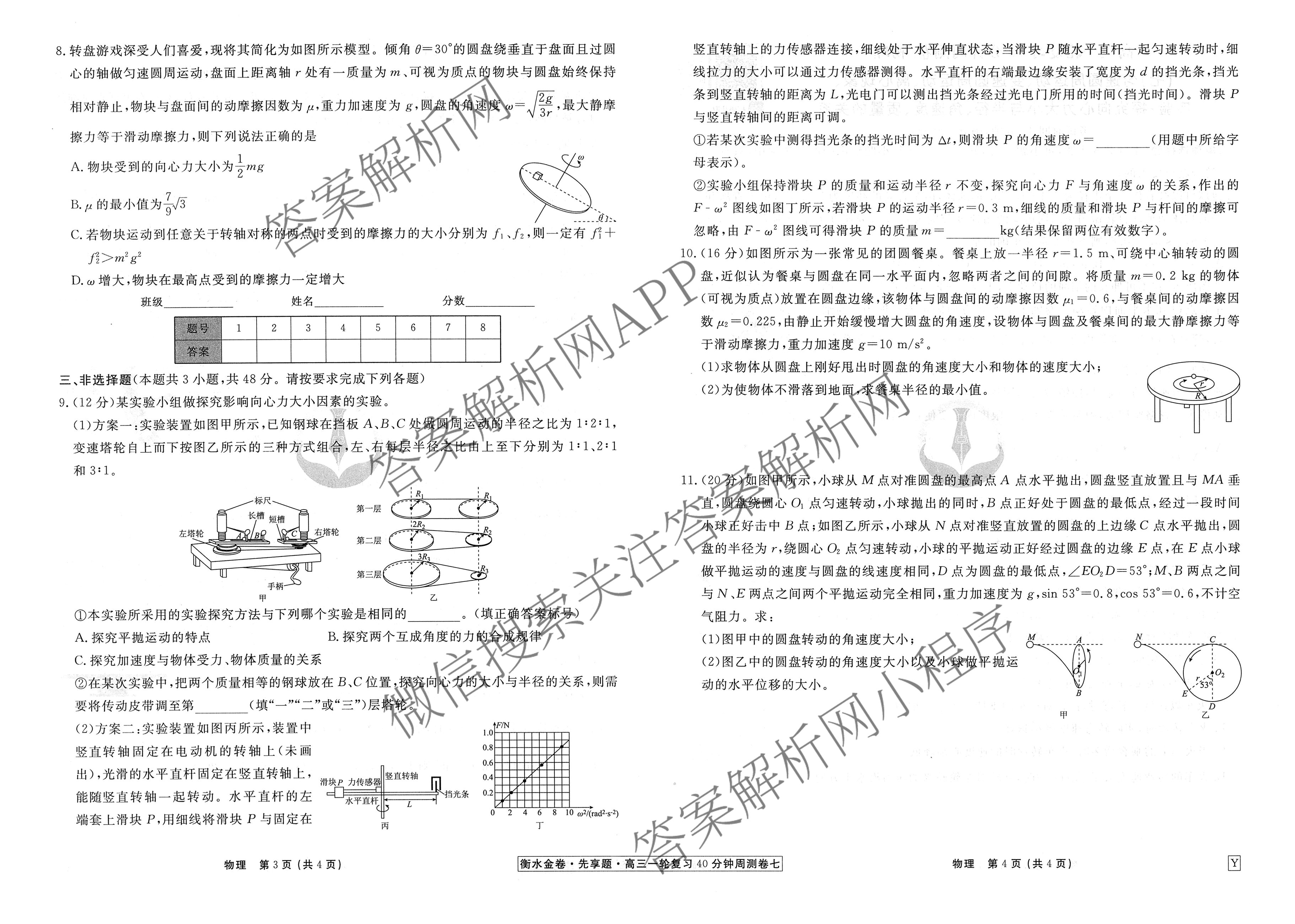2025-2026衡水金卷先享题·高三一轮复习40分钟周测卷(七)7物理(Y)试题,目前衡水金卷先享题答案网已经汇总了2025-2026衡水金卷先享题·高三一轮复习40分钟周测卷(七)7物理(Y)试题的各科答案和试卷,获取更多衡水金卷先享题答案解析,请在关注本站。