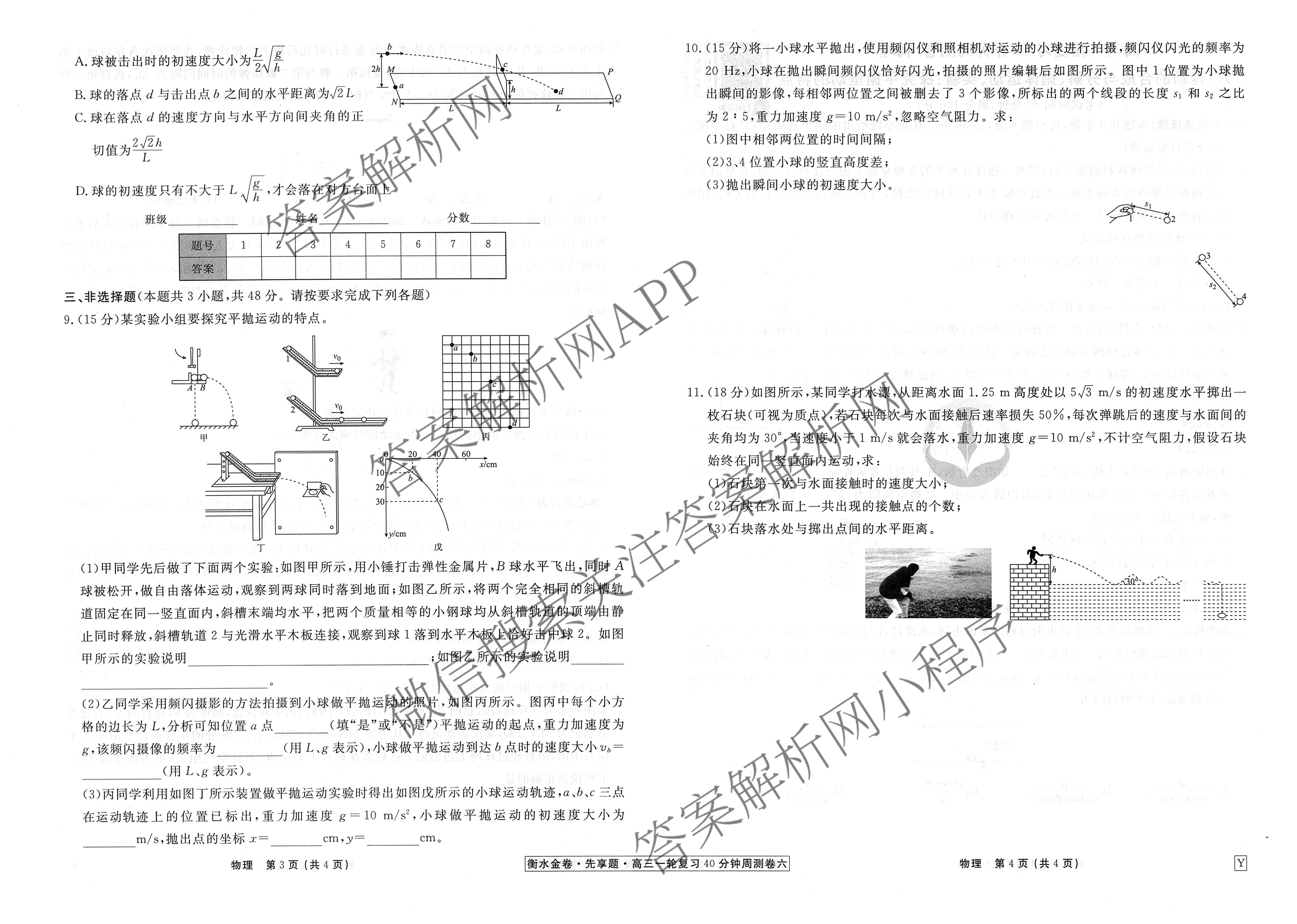 2025-2026衡水金卷先享题·高三一轮复习40分钟周测卷(六)6物理(Y)试题,目前衡水金卷先享题答案网已经汇总了2025-2026衡水金卷先享题·高三一轮复习40分钟周测卷(六)6物理(Y)试题的各科答案和试卷,获取更多衡水金卷先享题答案解析,请在关注本站。