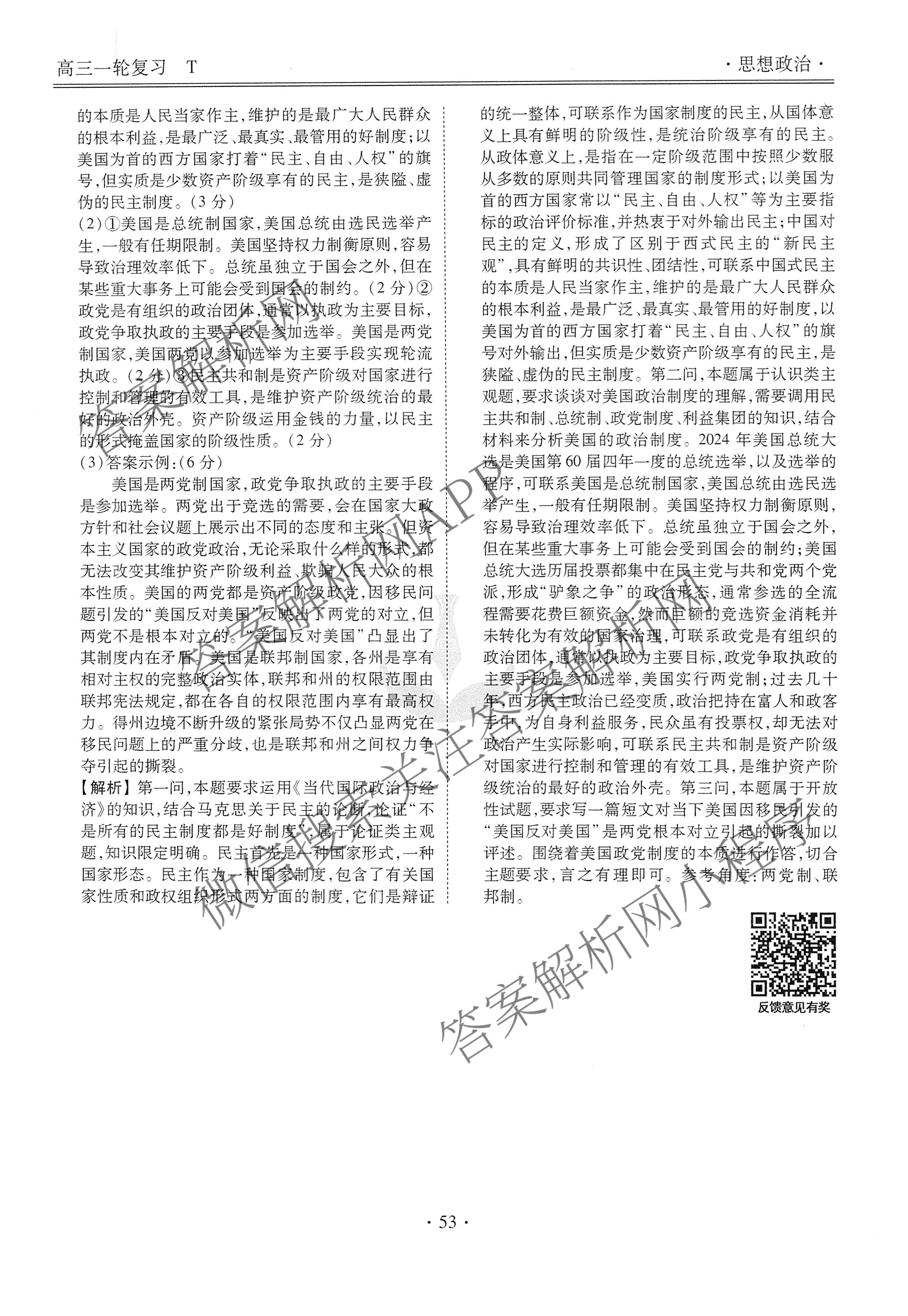 2025-2026衡水金卷先享题高三一轮复习单元检测卷(十一)11政治(T)答案
