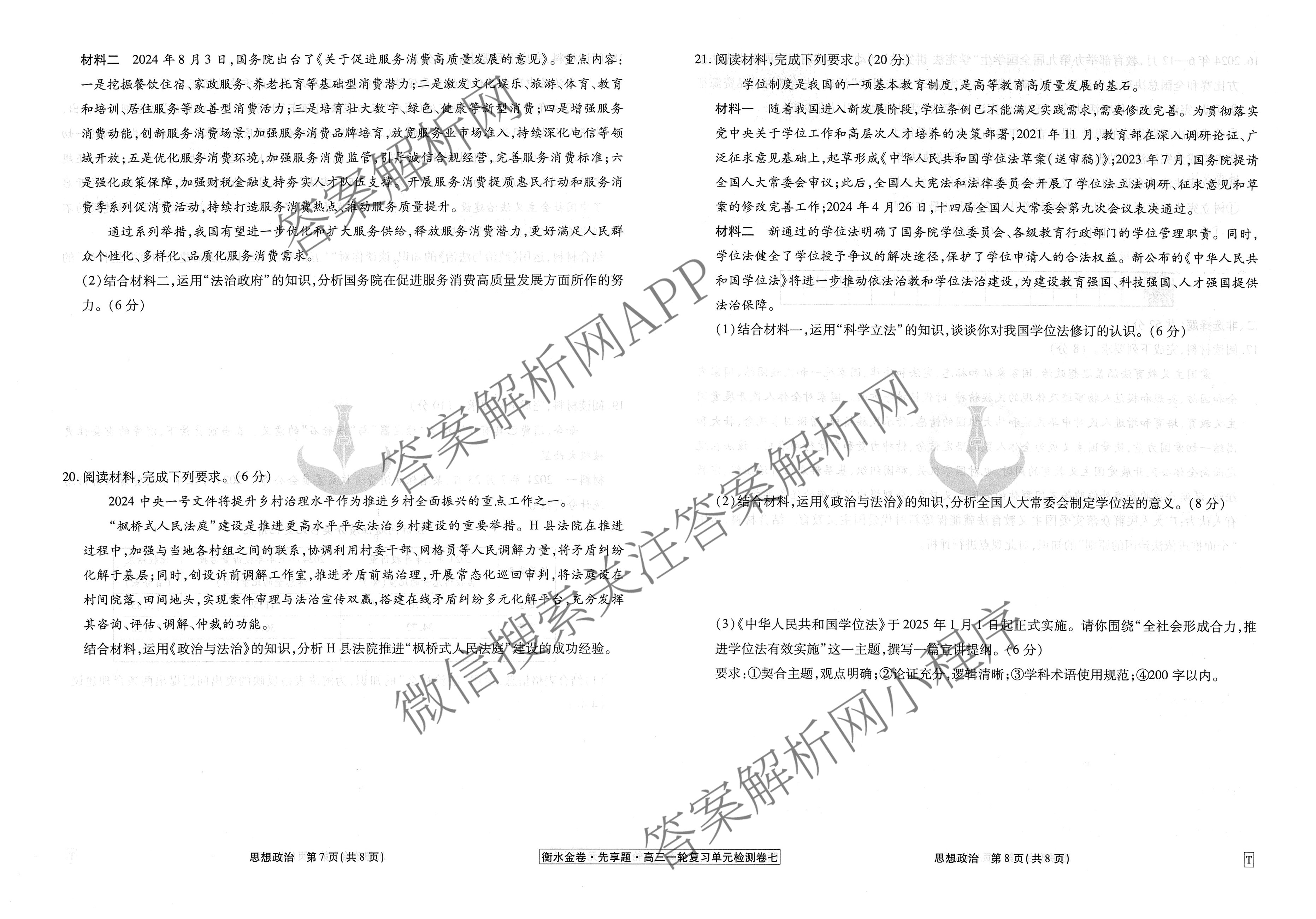 2025-2026衡水金卷先享题·高三一轮复习单元检测卷(七)7政治(T)试题,目前衡水金卷先享题答案网已经汇总了2025-2026衡水金卷先享题·高三一轮复习单元检测卷(七)7政治(T)试题的各科答案和试卷,获取更多衡水金卷先享题答案解析,请在关注本站。