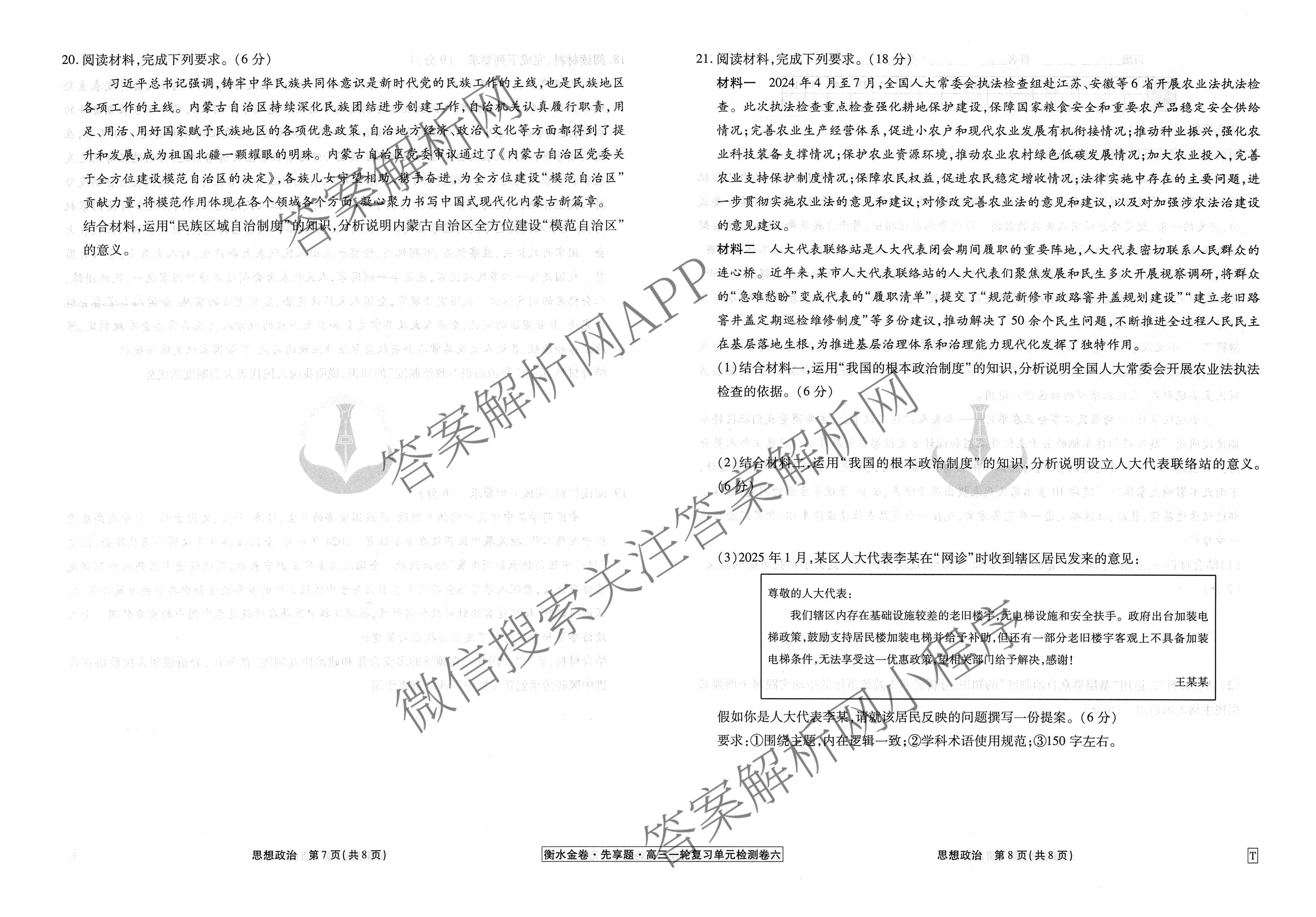 2025-2026衡水金卷先享题·高三一轮复习单元检测卷(六)6政治(T)试题,目前衡水金卷先享题答案网已经汇总了2025-2026衡水金卷先享题·高三一轮复习单元检测卷(六)6政治(T)试题的各科答案和试卷,获取更多衡水金卷先享题答案解析,请在关注本站。
