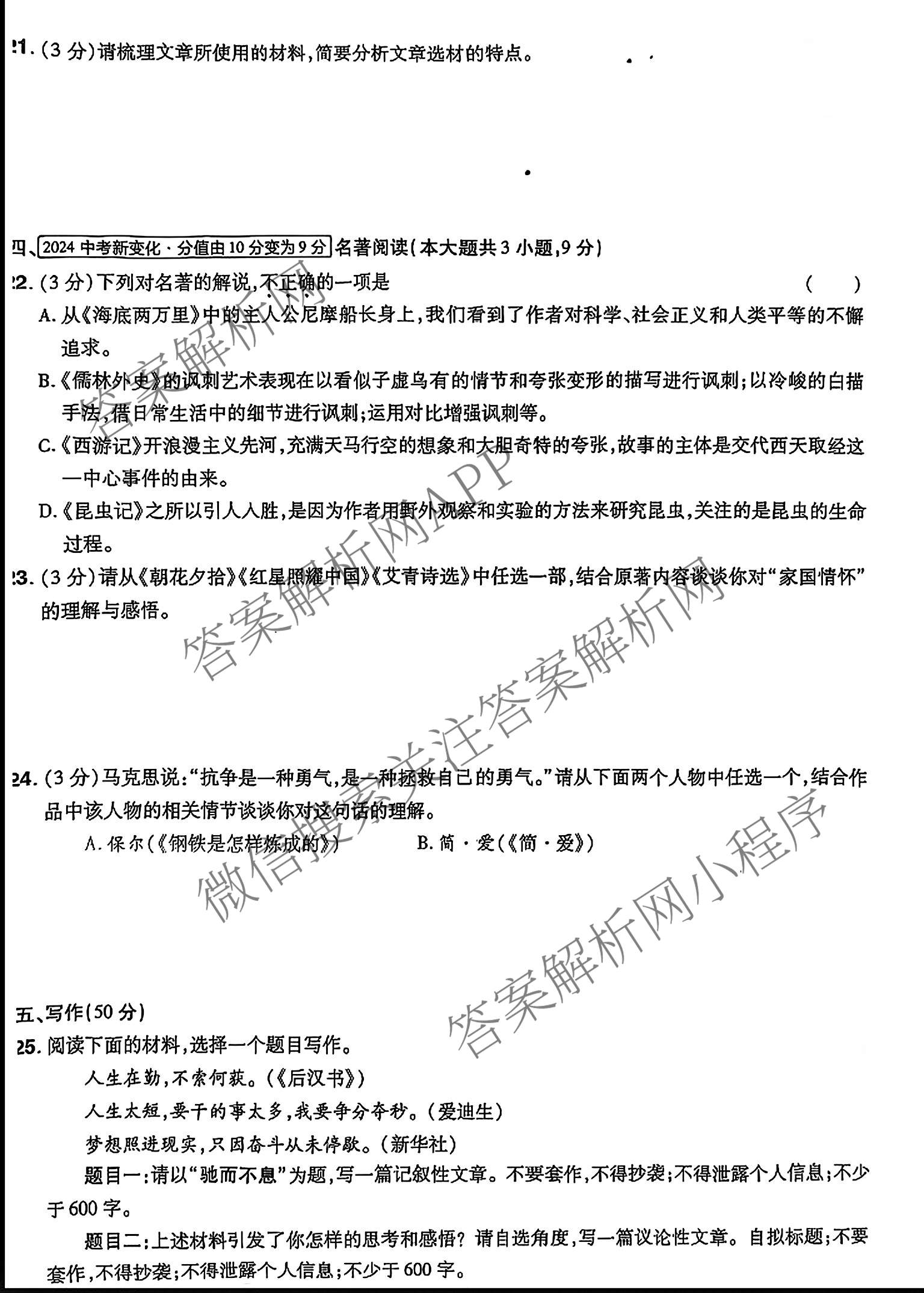 2025年江西省中考命题信息原创卷(四)语文试题,目前衡水金卷先享题答案网已经汇总了2025年江西省中考命题信息原创卷(四)语文试题的各科答案和试卷,获取更多地方模拟答案解析,请在关注本站。
