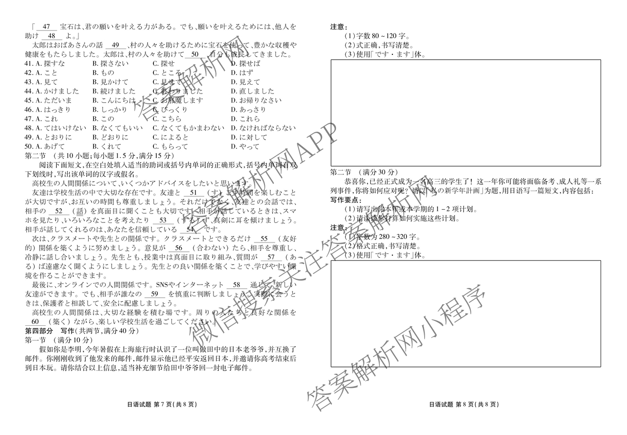 - (高三)衡水金卷先享题广东省2026届新开学联考日语答案