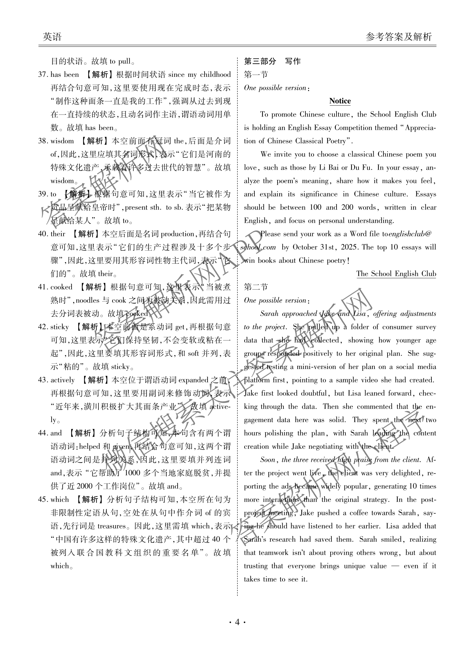 - 衡水金卷广东省2026届(高三)年级8月份联考(8.26)英语答案