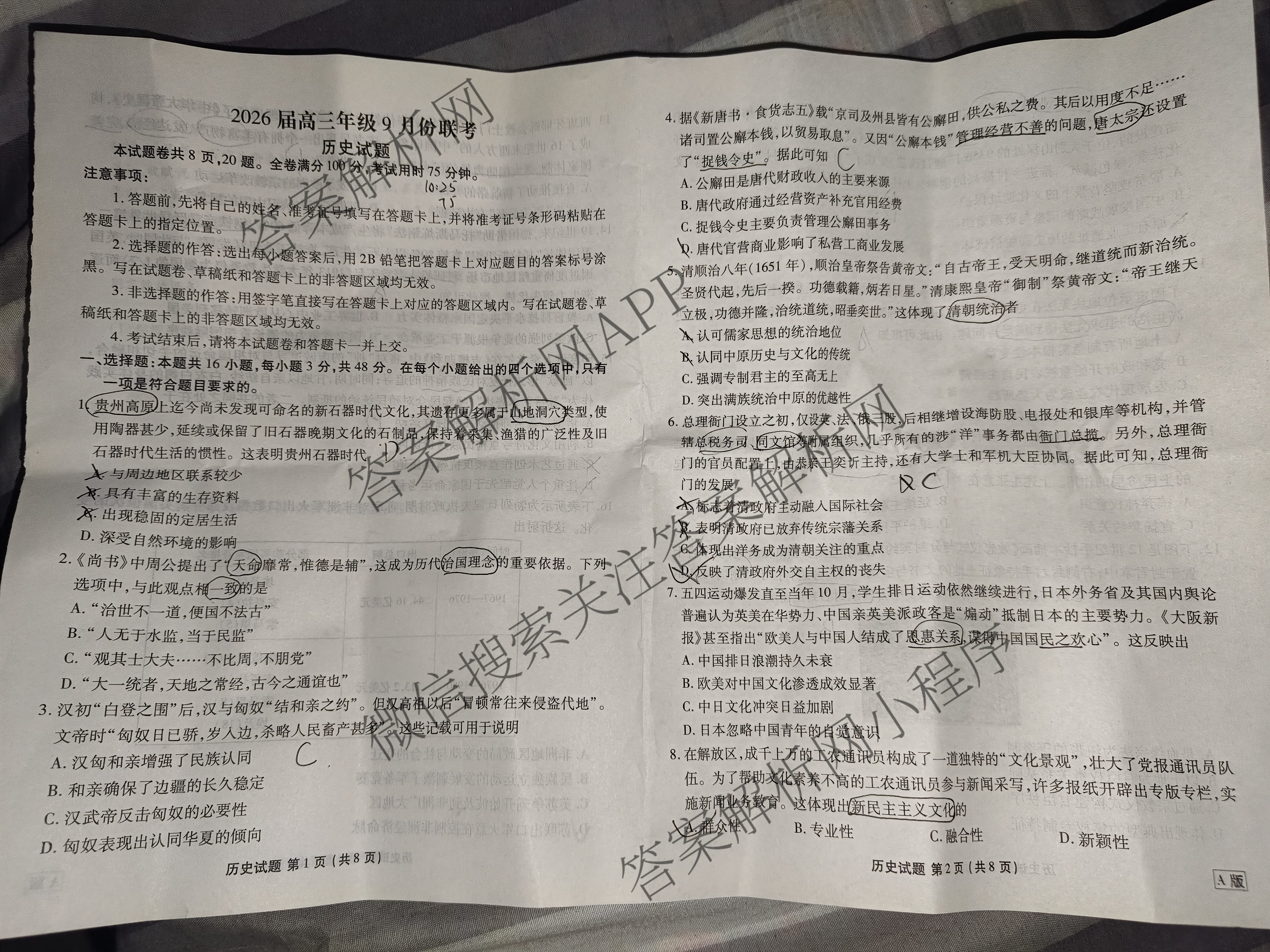 2026届(高三)衡水金卷·年级9月份联考(9.3)历史(A版)试题