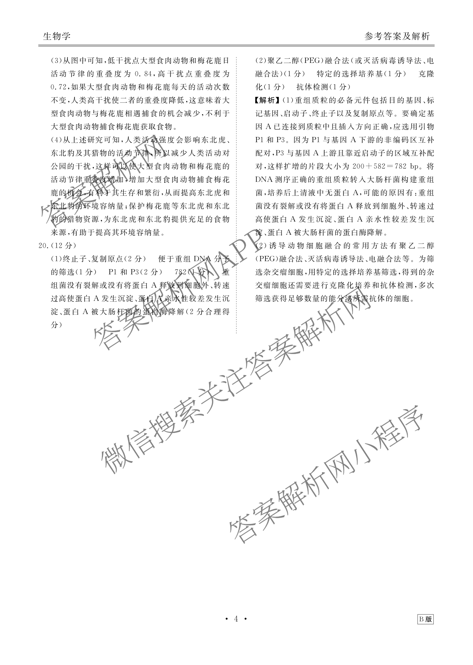 - 2026届高三衡水金卷·年级9月份联考(9.3)生物(B版)答案