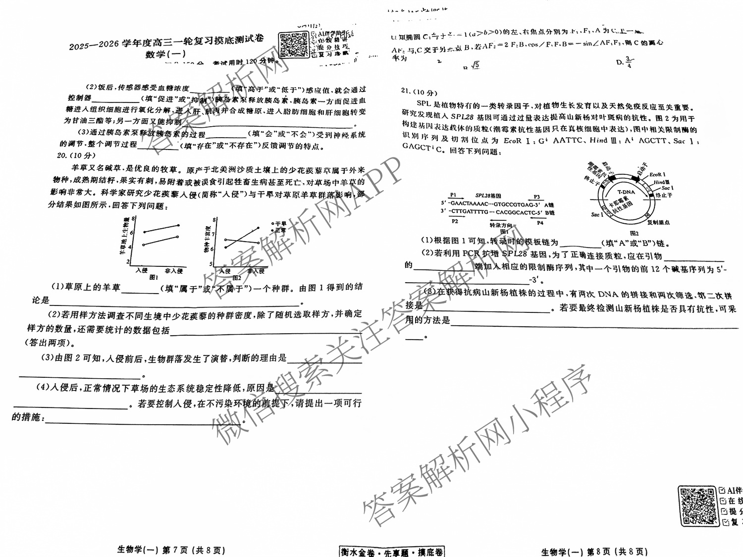 衡水金卷先享题·摸底卷2025-2026学年度高三一轮复习摸底测试卷(一)1生物(Y)试题,目前衡水金卷先享题答案网已经汇总了衡水金卷先享题·摸底卷2025-2026学年度高三一轮复习摸底测试卷(一)1生物(Y)试题的各科答案和试卷,获取更多衡水金卷先享题答案解析,请在关注本站。