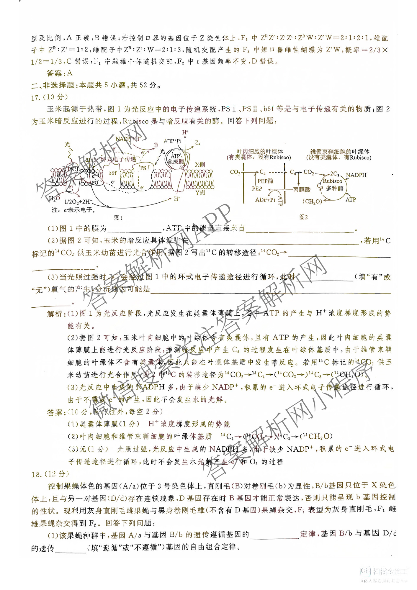 - 2025~2026(高三)衡水金卷先享题·摸底卷学年度一轮复习摸底测试卷(一)1生物(Q)答案
