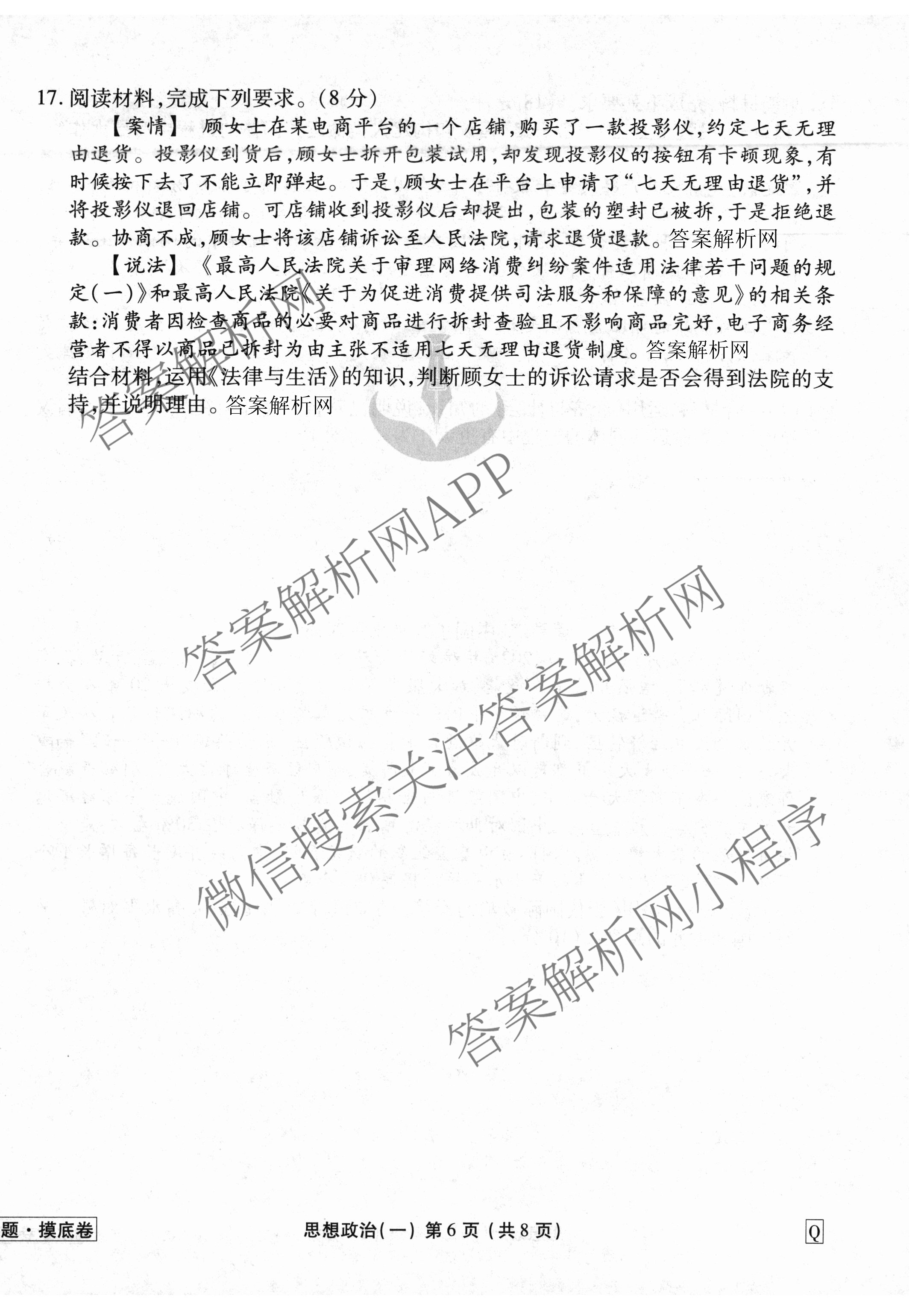 衡水金卷先享题·摸底卷2025-2026学年度高三一轮复习摸底测试卷(一)1政治(Q)试题,目前衡水金卷先享题答案网已经汇总了衡水金卷先享题·摸底卷2025-2026学年度高三一轮复习摸底测试卷(一)1政治(Q)试题的各科答案和试卷,获取更多衡水金卷先享题答案解析,请在关注本站。