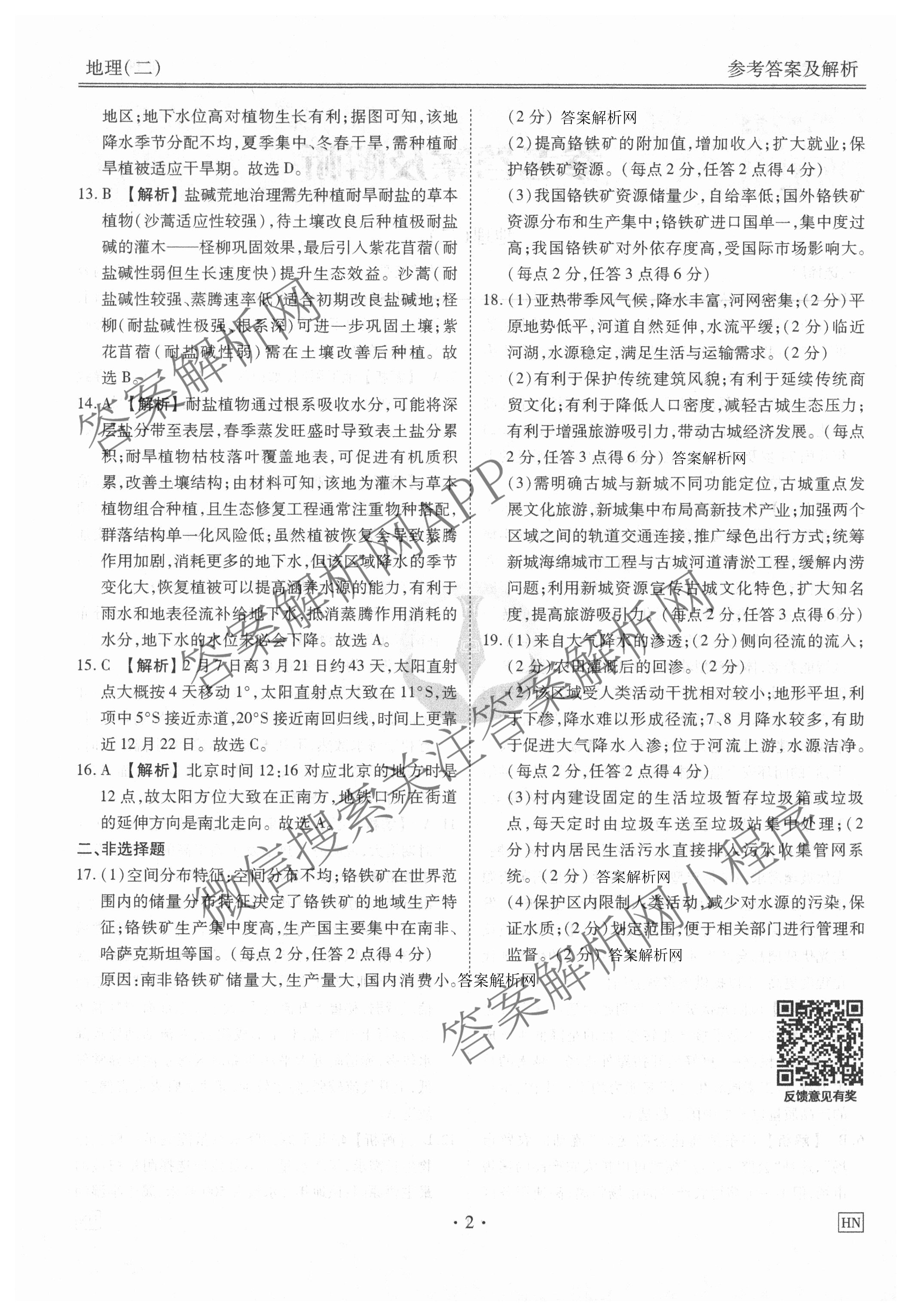 (衡水金卷先享题)·摸底卷2025~2026学年度[高三]一轮复习摸底测试卷(二)2地理(HN)答案