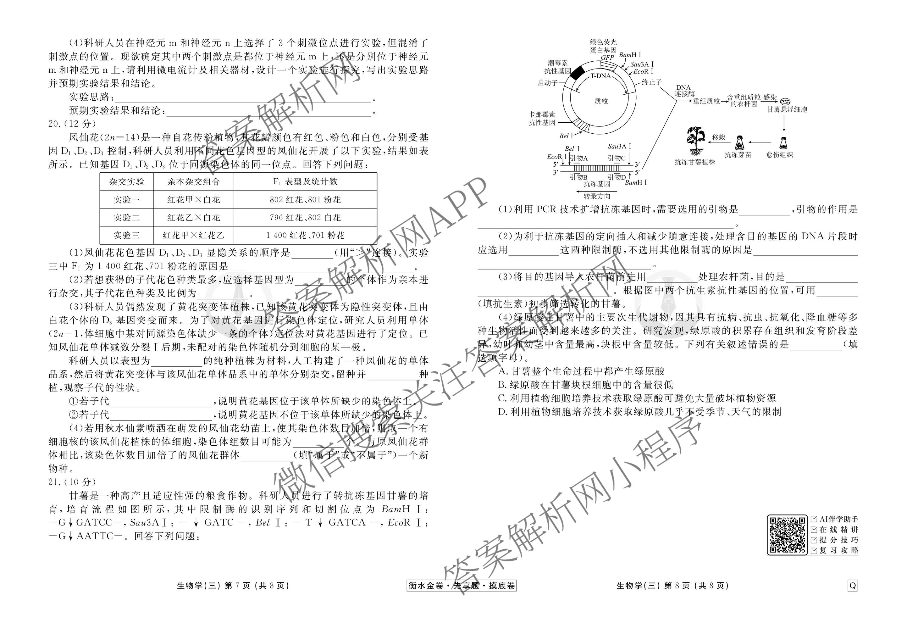 衡水金卷先享题·摸底卷2025-2026学年度高三一轮复习摸底测试卷(三)3生物(Q)试题,目前衡水金卷先享题答案网已经汇总了衡水金卷先享题·摸底卷2025-2026学年度高三一轮复习摸底测试卷(三)3生物(Q)试题的各科答案和试卷,获取更多衡水金卷先享题答案解析,请在关注本站。