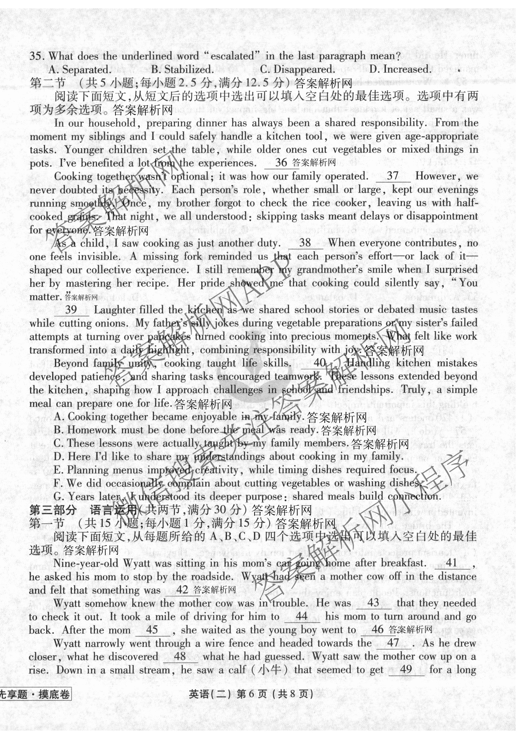 - [高三](衡水金卷先享题)摸底卷2025~2026学年度一轮复习摸底测试卷(二)2英语试题