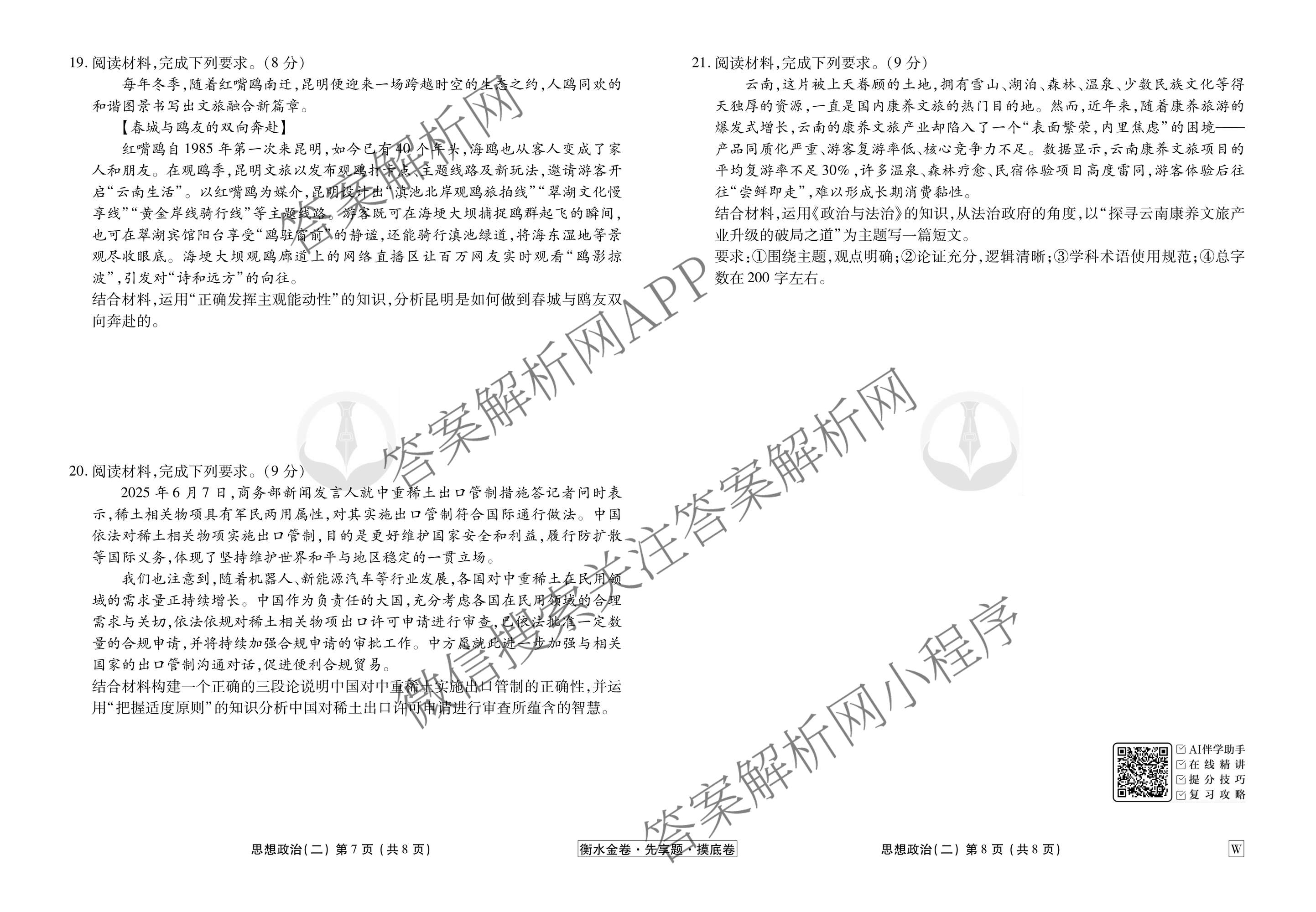 - [衡水金卷先享题]摸底卷2025~2026学年度[高三]一轮复习摸底测试卷(二)2政治(W)试题