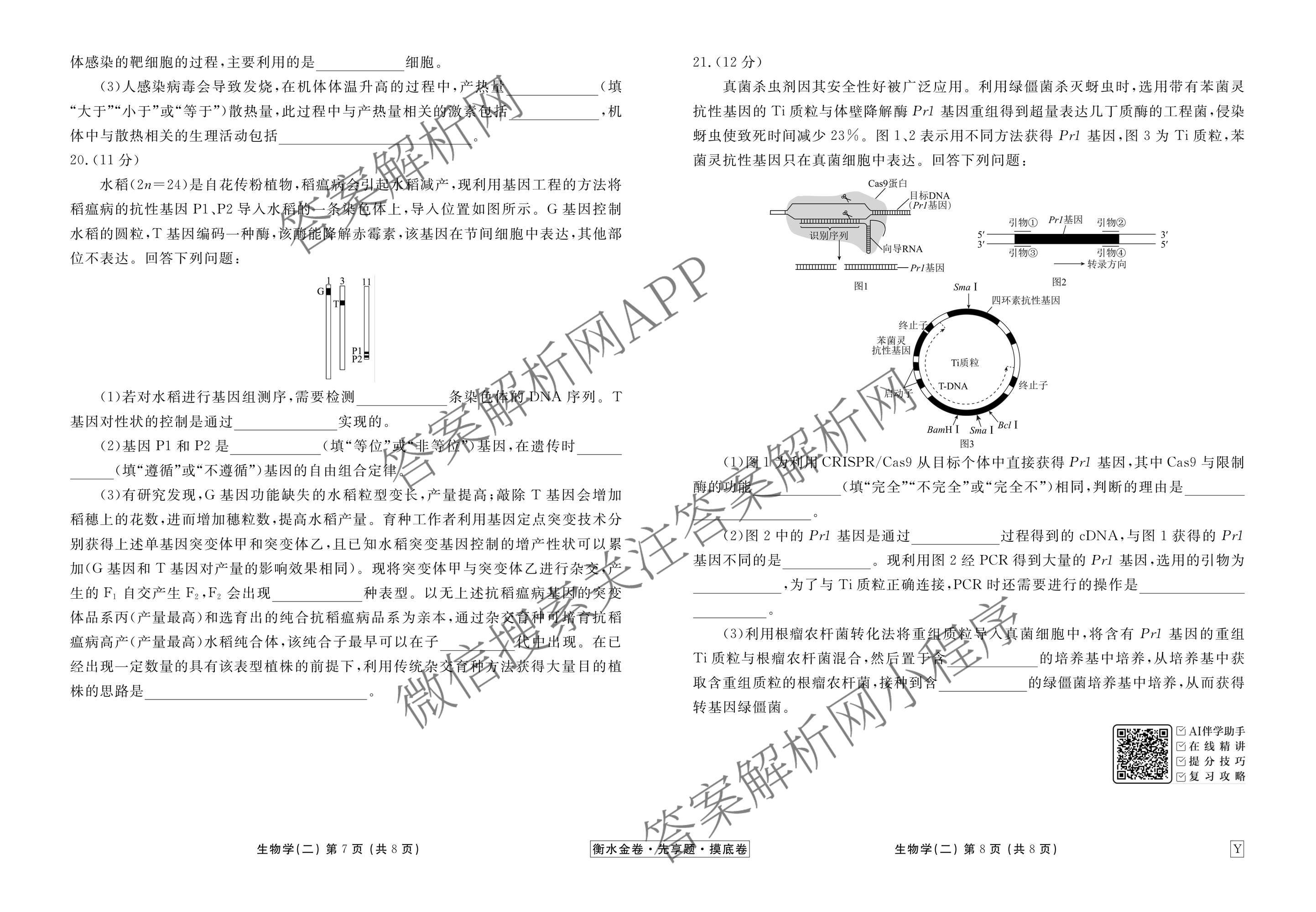 衡水金卷先享题·摸底卷2025-2026学年度高三一轮复习摸底测试卷(二)2生物(Y)试题,目前衡水金卷先享题答案网已经汇总了衡水金卷先享题·摸底卷2025-2026学年度高三一轮复习摸底测试卷(二)2生物(Y)试题的各科答案和试卷,获取更多衡水金卷先享题答案解析,请在关注本站。