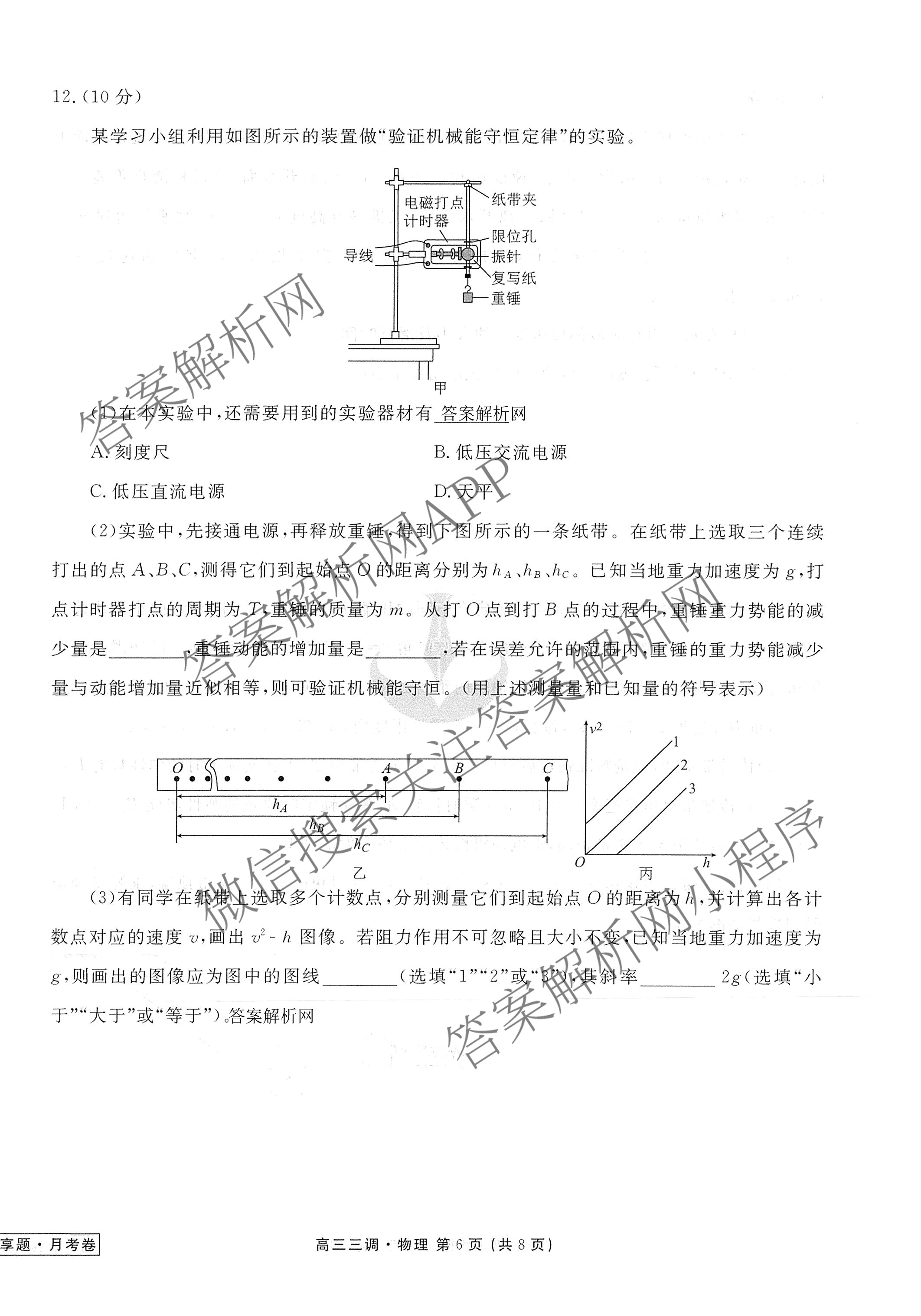 衡水金卷先享题·月考卷·2025-2026学年度上学期高三年级三调考试物理试题,目前衡水金卷先享题答案网已经汇总了衡水金卷先享题·月考卷·2025-2026学年度上学期高三年级三调考试物理试题的各科答案和试卷,获取更多衡水金卷先享题答案解析,请在关注本站。